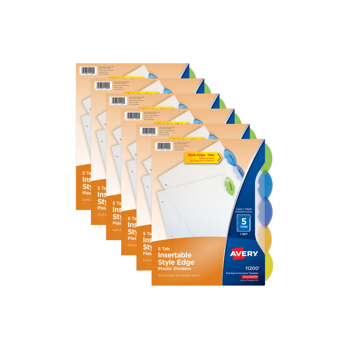 Avery 5-Tab Plastic Binder Dividers with Insertable Style Edge Tabs are a simple yet sophisticated solution to paper organization. Each binder divider with tabs is made of durable, tear-resistant PVC-free plastic, ideal for 3-ring binders with frequently referenced documents. Style Edge divider tabs give your dividers a modern look with a unique oval tab shape and are designed to keep your inserts locked in during use. With these page dividers, you're certain to achieve an organizational edge that's both colorful and attractive. Sturdy and built to withstand everyday use, this multicolor set of translucent plastic 5-tab binder dividers is great for organizing schoolwork, personal finances, recipes, coupons, sheet music, or anything else that needs sorting. These plastic dividers are 3-hole punched and ready for immediate use. For a clean, professional look, personalize your page tab inserts using free templates, fonts and designs on the Avery site. Inserts are compatible with laser and inkjet printers. Sold as 6 sets.