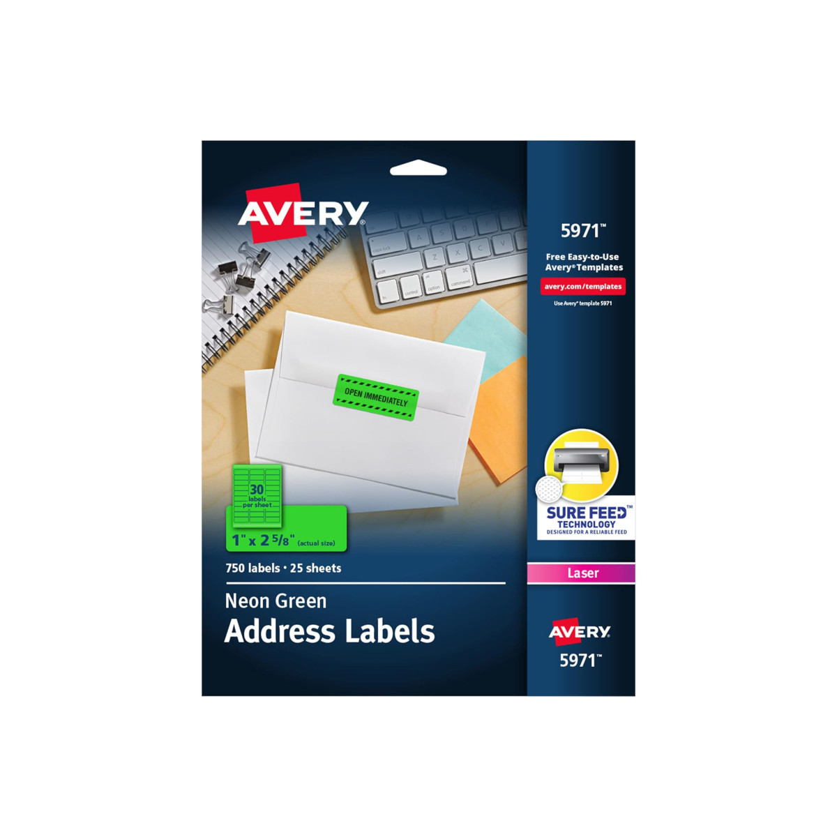 Does you have something bold to say? Then say it loud and clear with these Neon Green High-Visibility Labels. They enable eye-catching colors that will get your advertisement, flier or brochure noticed. And with free templates from avery.com and your laser printer, you can customize the labels with attention-grabbing text and graphics for a powerful message. Labels measure 1" x 2-5/8", permanent adhesive. Includes 750 labels on 25 sheets.