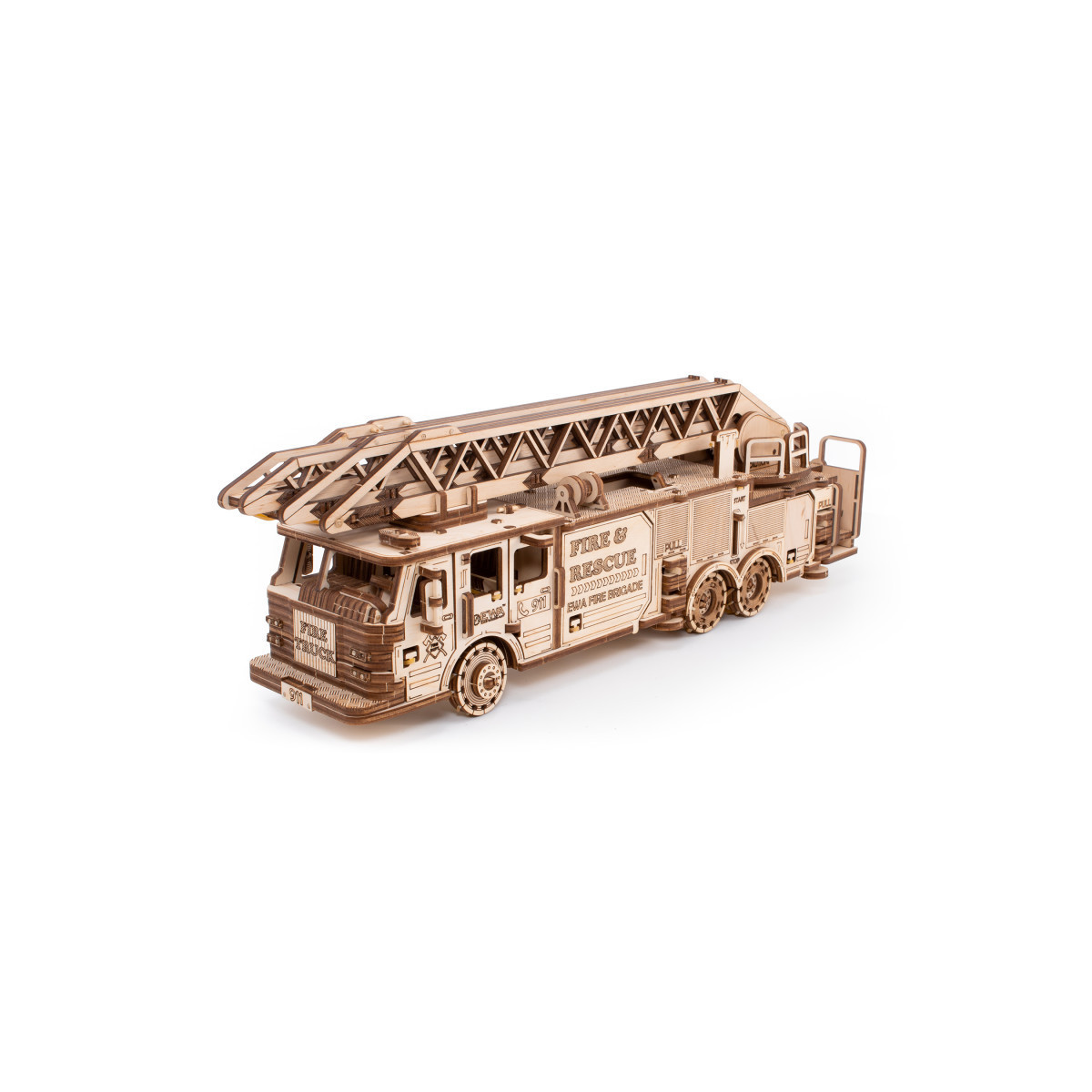 This large fire truck 3D construction model is perfect for those who enjoy hands-on building projects. With a wind-up rubber-band mechanism and key activation, this model features a retractable and rotating fire ladder, rotating front wheels, opening front doors, and retractable truck stoppers for added realism. Ideal for both kids and adults, this highly detailed and realistic representation of a fire truck can be easily painted and decorated to make it unique and personalized.