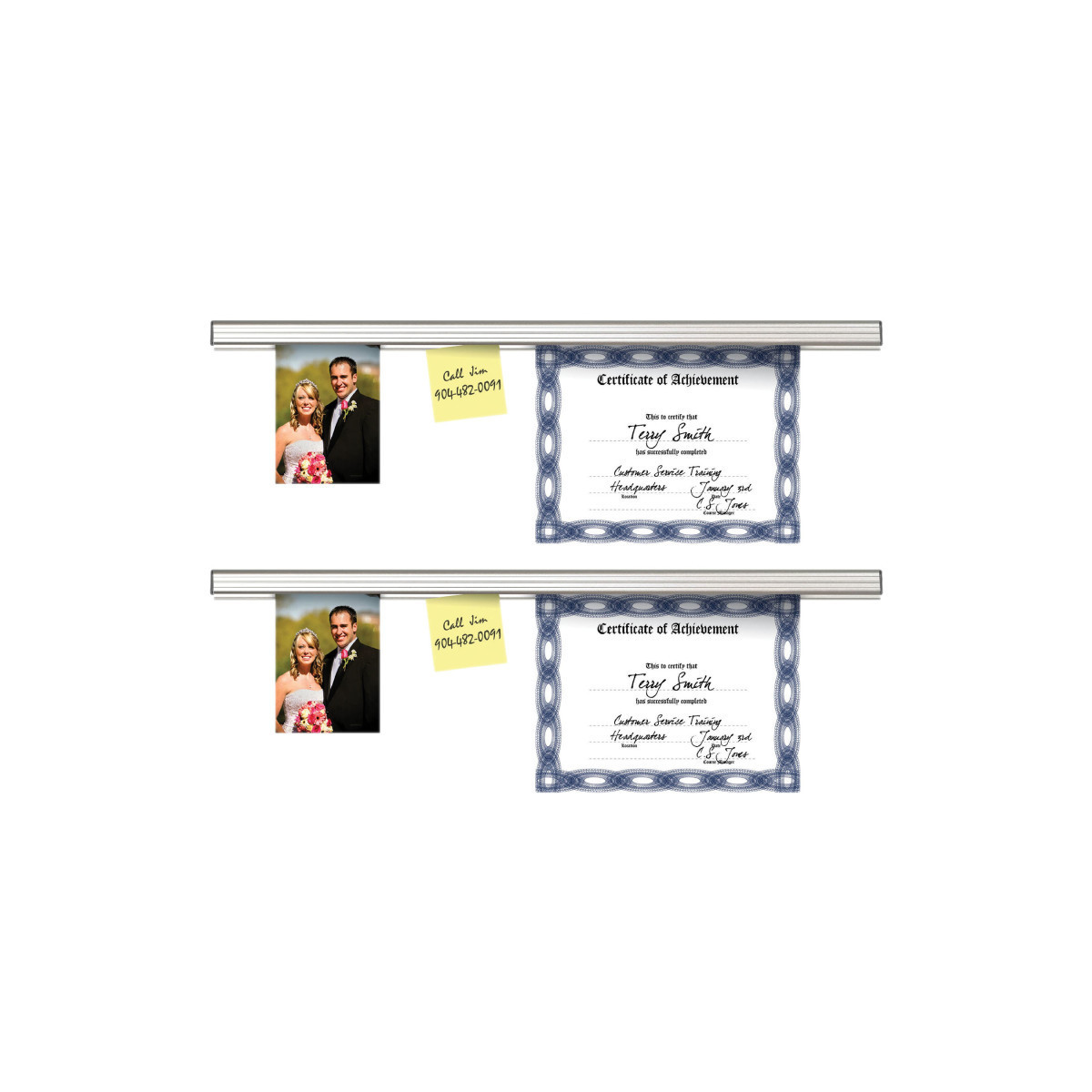 This convenient and durable display system uses a system of interlocking rollers to adapt to various thicknesses of paper, posters, and other items up to .125" thick. The best solution for communicating ideas while displaying a variety of visual aids for commercial, personal, and professional use. Grip-A-Strip eliminates the need for hazardous tacks and pins and includes mounting tape and brackets, allowing you to mount it almost anywhere. Clean satin aluminum finish for a sleek, professional look. Sold as a pack of 2 display rails.