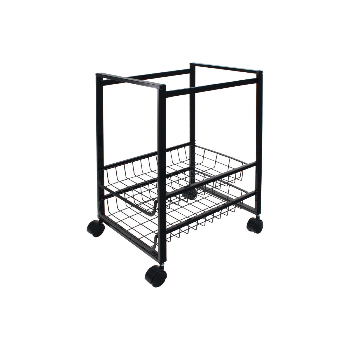 Easily access files without compromising portability. Includes two convenient, pull-out storage baskets for additional supplies and holds letter-size files and documents. The swiveling, dual-wheel castors (2 locking) allow for enhanced mobility and ease-of-access. Made with rugged steel for greater durability. Cart Dimensions: 21"H x 12.75"W x 15"D. Drawer Dimensions: 2"H x 12"W x 14.75"D. Black.