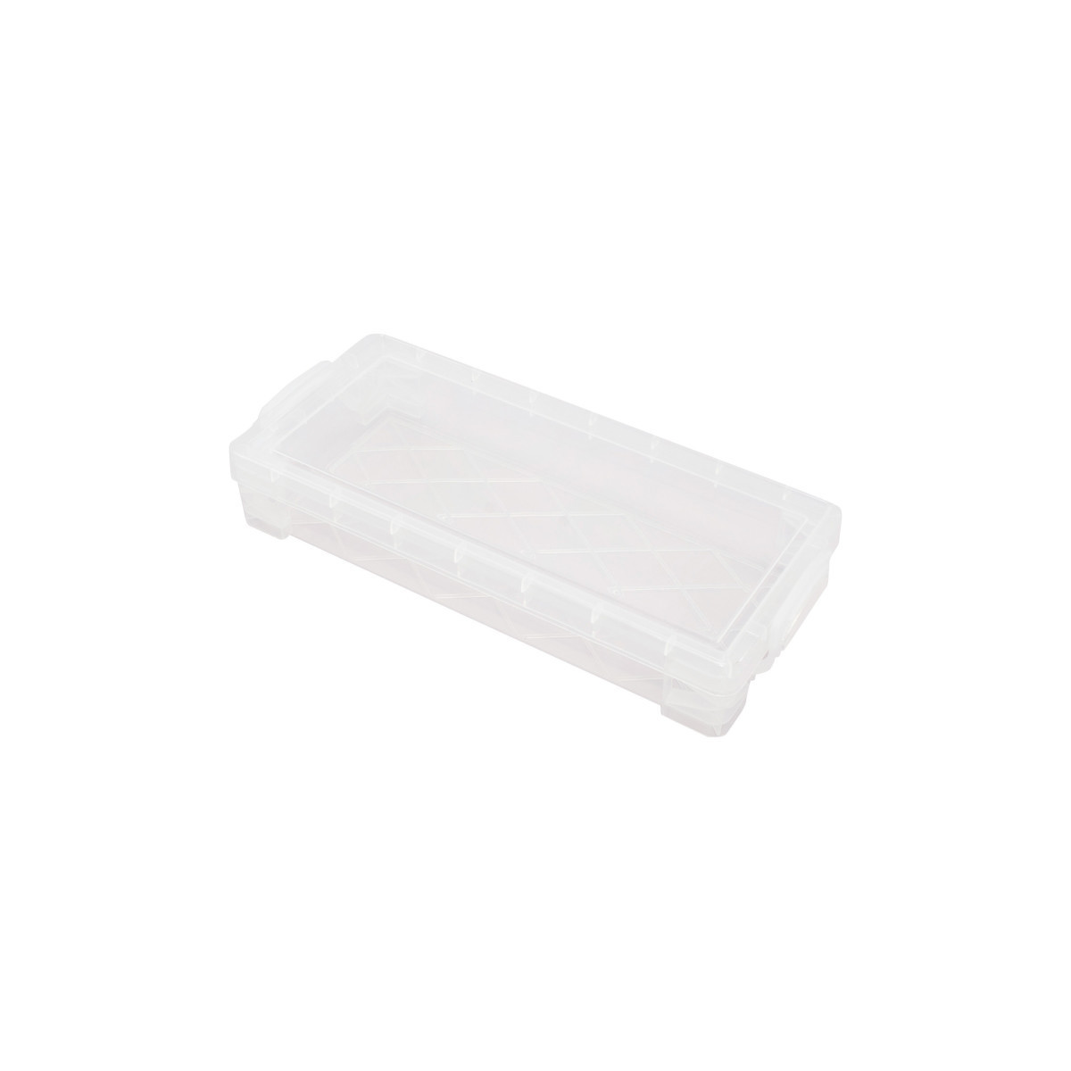 The Super Stacker Pencil Box is ideal for storing pencils, pens, markers, crayons, and more. Lock tight handles keep contents secure, while stackable design helps save space. Measures 3.75" x 8.375"L x 1.625"H.