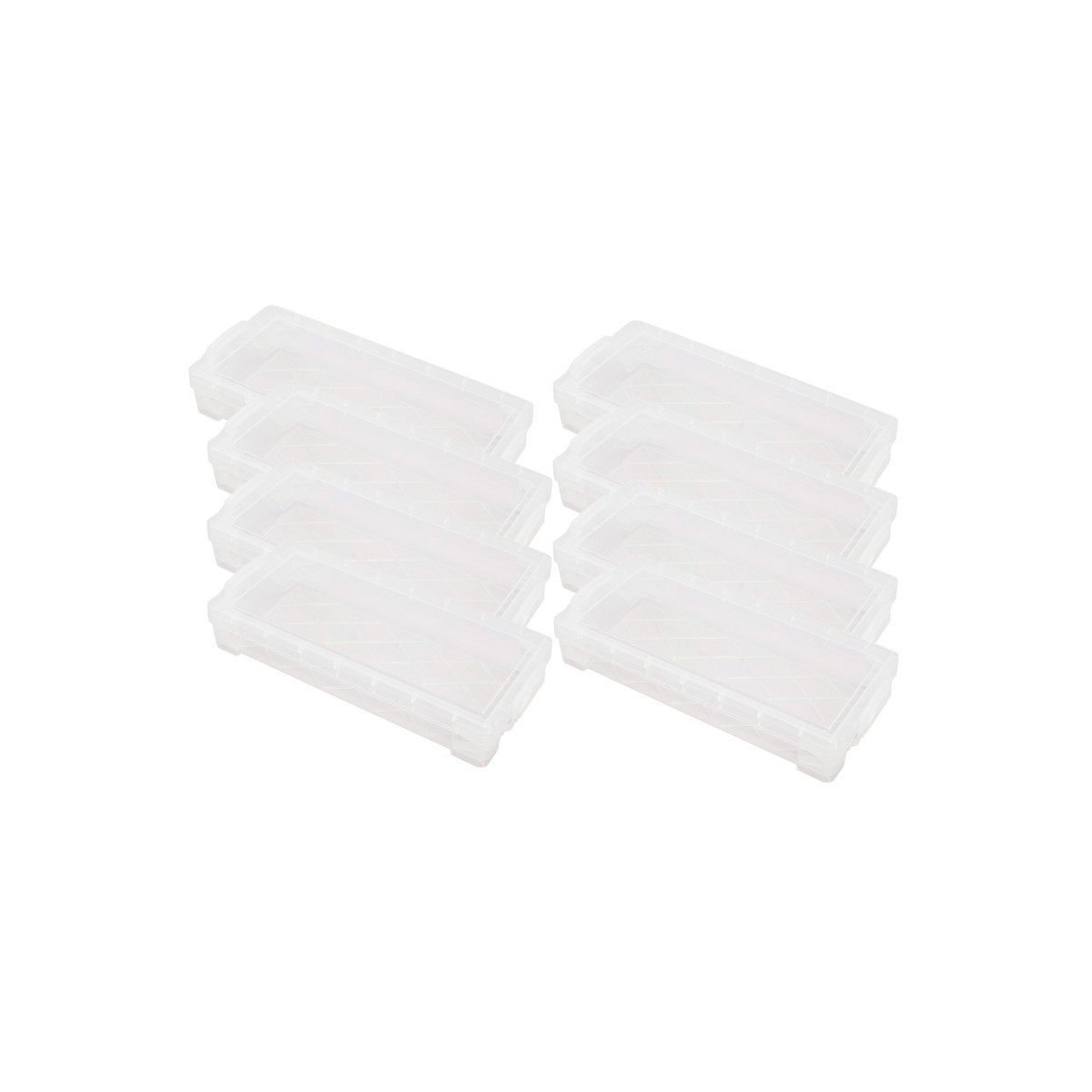 The Super Stacker Pencil Box is ideal for storing pencils, pens, markers, crayons, and more. Lock tight handles keep contents secure, while stackable design helps save space. Measures 3.75" x 8.375"L x 1.625"H. Sold as a pack of 8 pencil boxes.