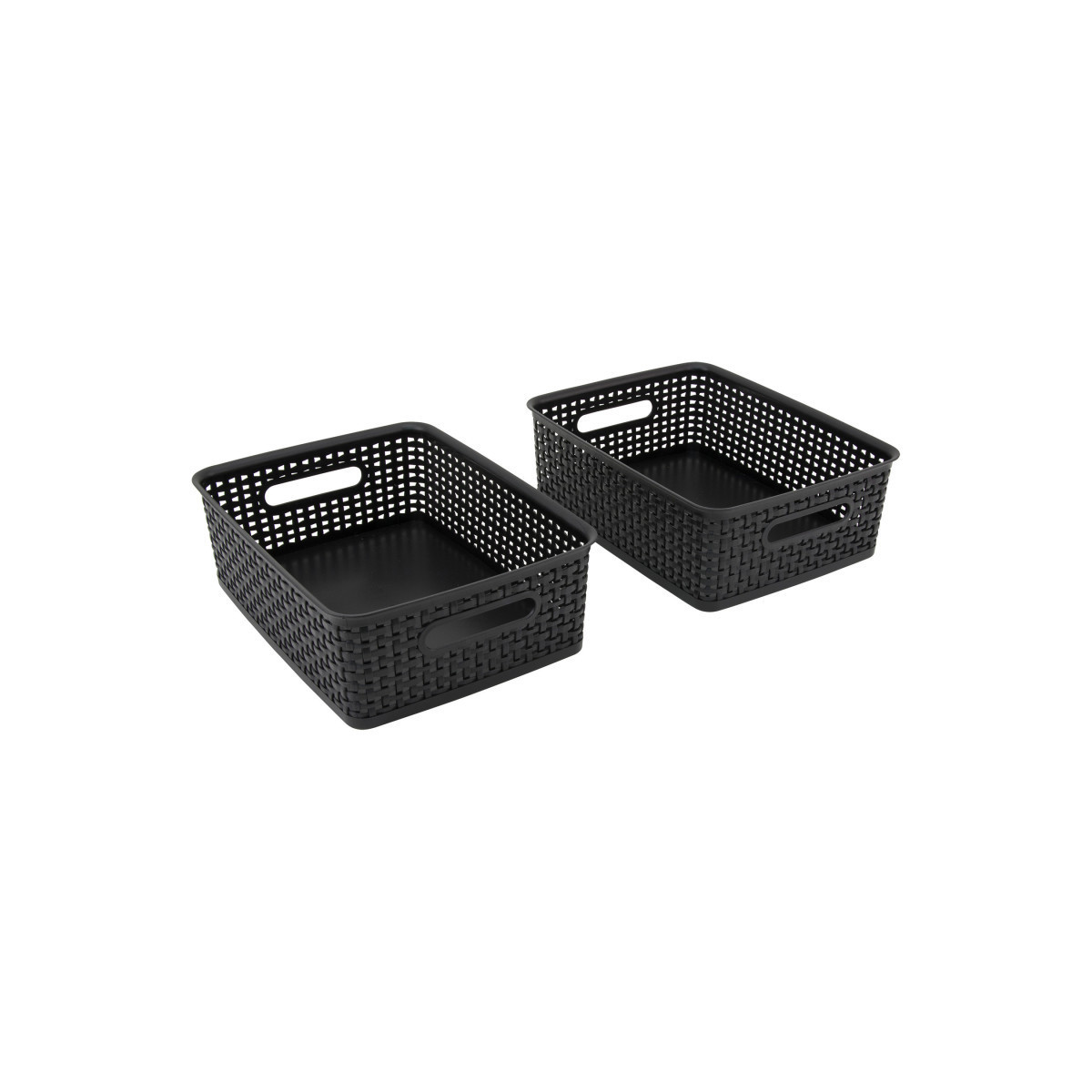 Function and fashion come together in these plastic weave bins to declutter any home or office environment. These medium sized bins are perfect for a variety of items such as papers, folders, and more. Made with a sturdy black plastic, these bins can serve a multitude of functions. Each bin measures 10.25"L x 14.25"W x 4.75"H.