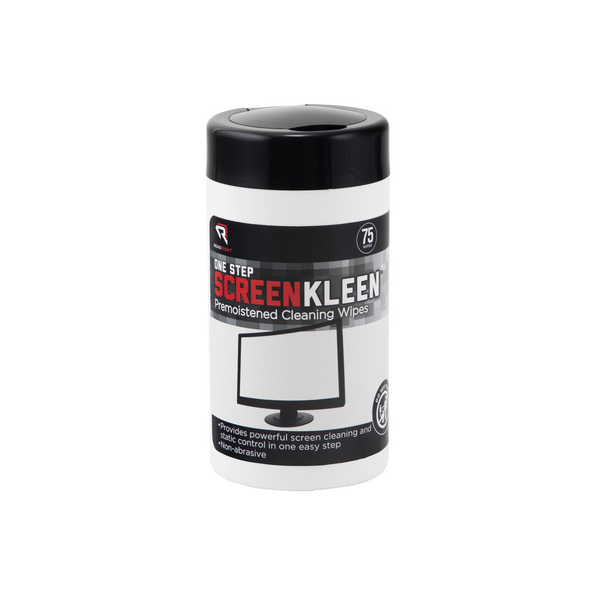 ReadRight ScreenKleen One-Step Cleaning Wet Wipes provides powerful screen cleaning performance and static control, all with the convenience and cost savings of a one-step product. These cleaning pads are nonabrasive, yet strong enough to remove dirt, dust, even stubborn fingerprints. This economical performer is perfect for every workstation. Not for use on nylon mesh/polarized antiglare screens. Each tub includes 75 cleaning wipes.