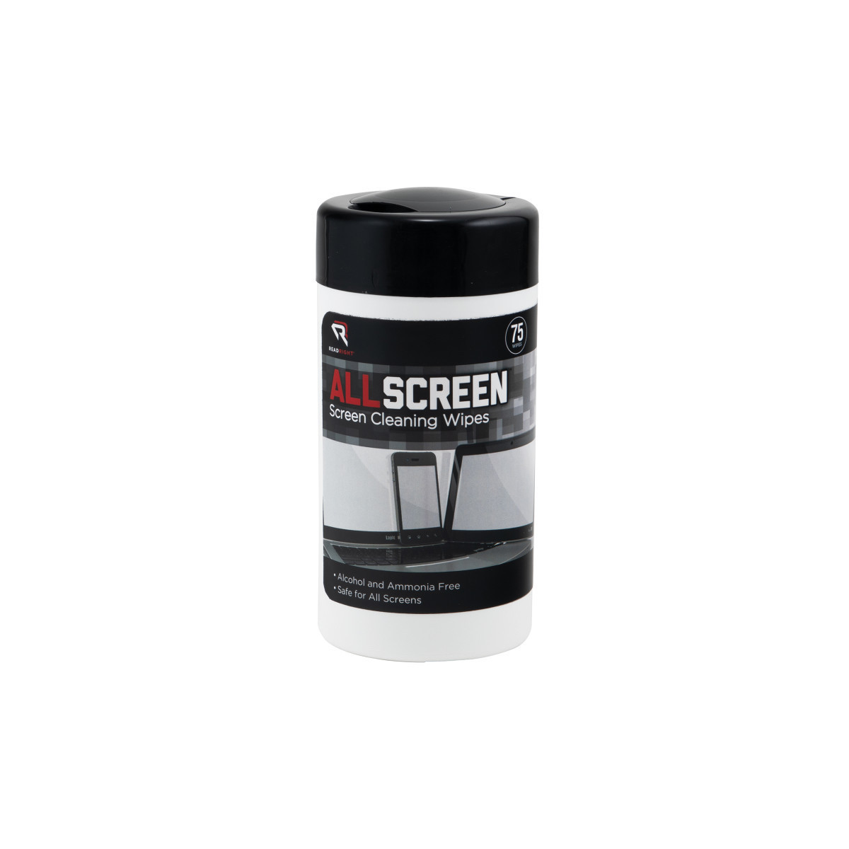 The ReadRight AllScreen Cleaning Wipes are the perfect way to clean and polish screens of all types, including anti-glare. Made from soft, non-abrasive cloth and pre-saturated with a special solution that evaporates quickly, these wipes are ideal for monitors, televisions, smartphones, LCDs, and other flat panel displays - no scratching, no dry time, no residue, and no streaks. These quick-fix wipes are perfect for removing dirt, smudges, and fingerprints from high-use equipment, such as touchscreens in retail stores and hospitals, as well as display screens on phones or tablets in doctors' offices. Pop-up tub dispenser keeps pads fresh for convenient carrying or storage. Each tub includes 75 cleaning wipes.