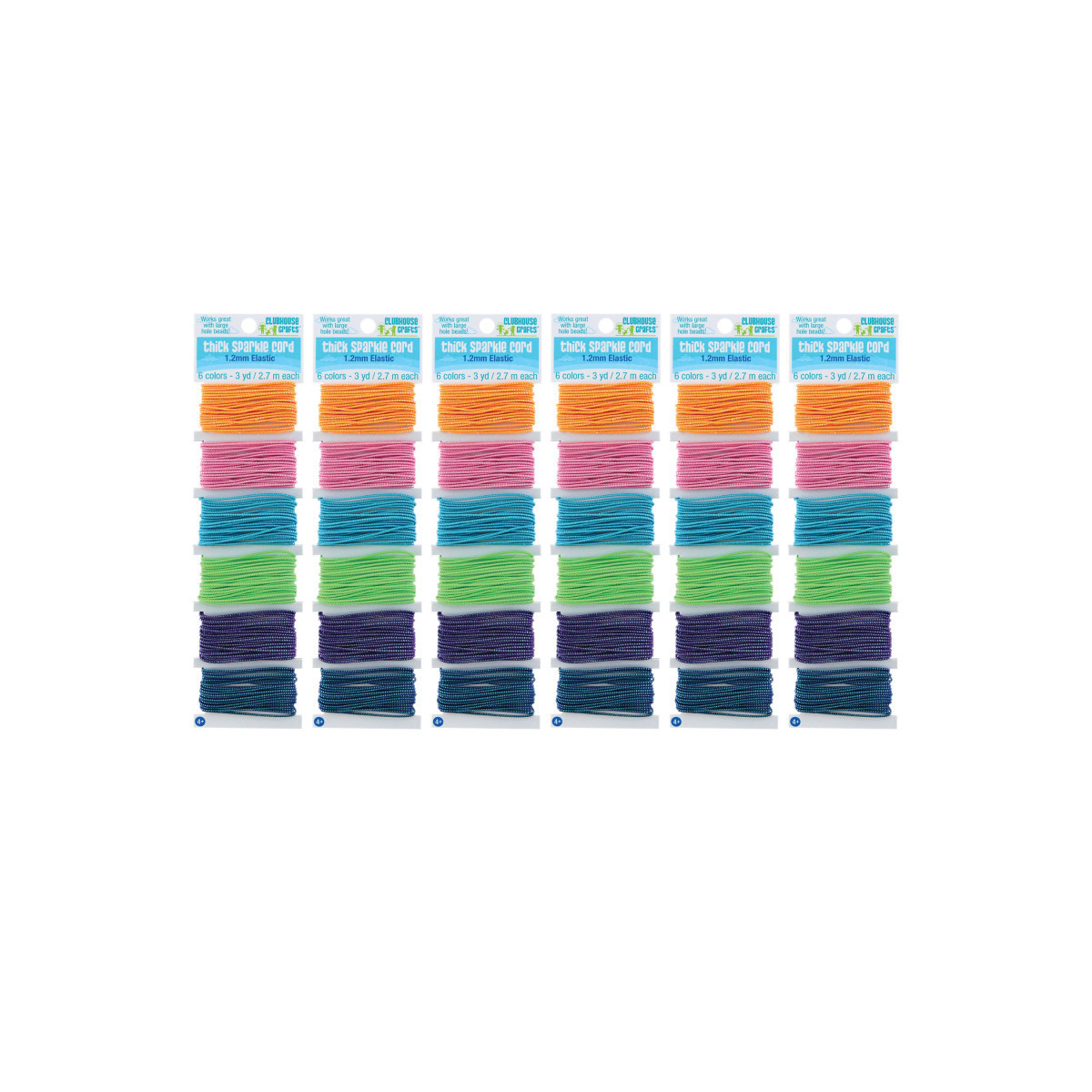 Create jewelry with this Thick Sparkle Cord. Perfect for stringing beads or adding to tags. Each pack includes 3 yards each of 6 colors - 18 yards per pack. Sold as 6 packs for a total of 108 yards of cord.