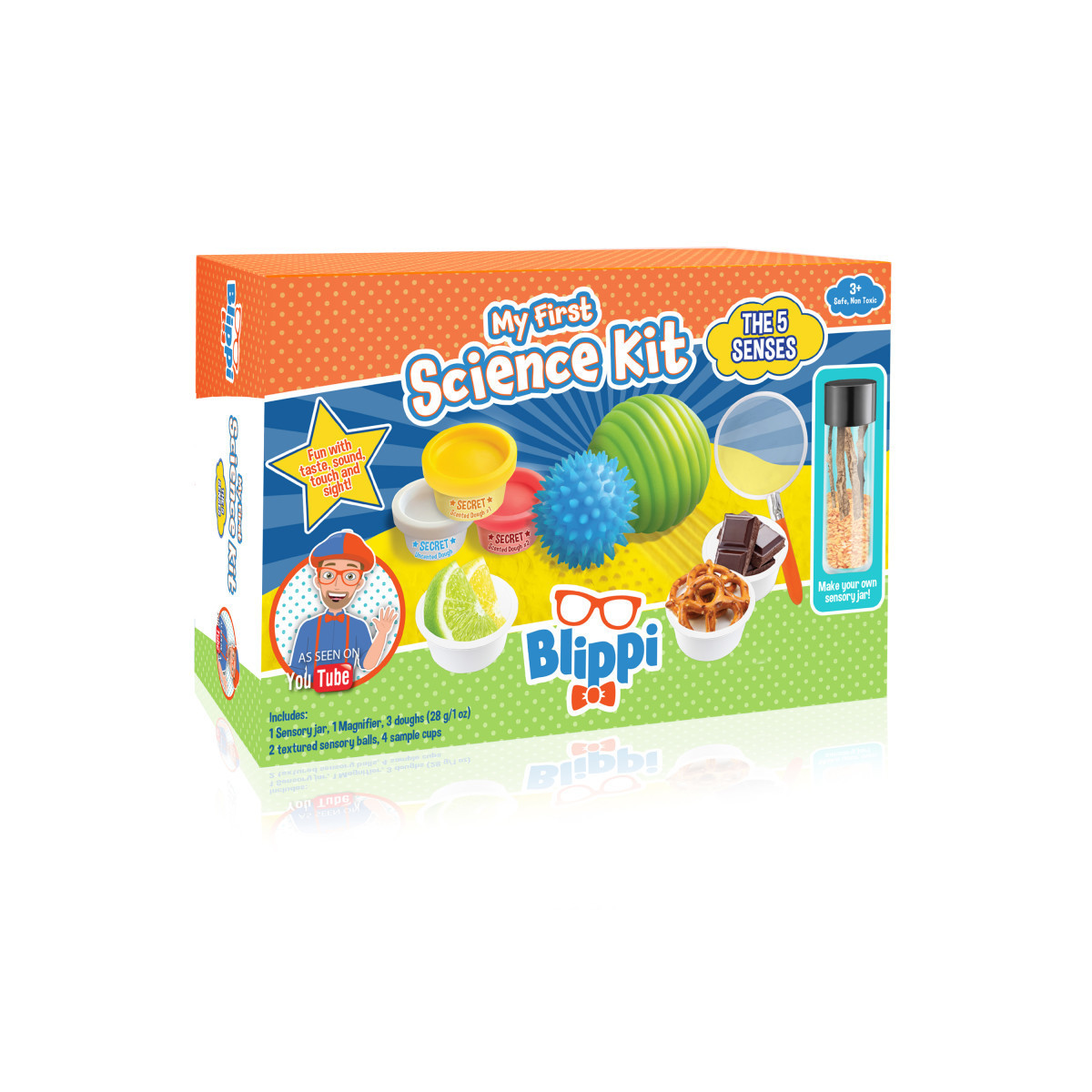 Give kids an endlessly entertaining science kit that will help them appreciate their 5 senses. They'll learn how each sense is used and will better understand their surroundings. Kids love to learn and are always looking for ways to experiment. Provide them with the perfect starter kit to get them going on their learning journey. They will get to blind taste random foods, play with and smell secret scented dough, roll textured balls on dough to create many patterns, create a musical sound stick and find Blippi with their very own magnifier. Sensory adventure awaits!