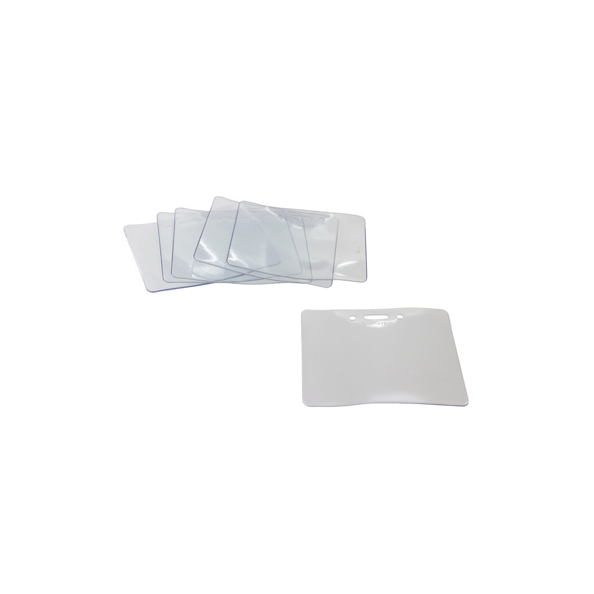 When you want to display your ID card, visitors pass or security authorization with safety and style in mind, SICURIX vinyl, credit card sized badge holder fits the bill. It has die-cut holes through the front and back so that the card cannot be removed when clip is attached. This badge holder can easily be attached to one of SICURIX quality lanyards or retractable card reels so that you'll never lose it and it's always on hand for easy access. It's even safe for children to use for school IDs. The horizontal wallet is made from durable, transparent plastic. The maximum insert size: 3-3/4" x 2-3/8". Each pack contains 50 holders.