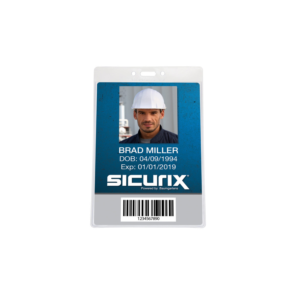 If your job requires that you wear a larger identity card or security pass SICURIX clear vinyl card holder is for you. Easily attach your ID card or badge to your person for easy identification and security card holder using this transparent, vertical badge holder. The holder is pre-punched and easily attaches to card reels, lanyards, chains or barbs. The plastic wallet provides protection and easy access for your ID badge. Holders are also great for conference passes, bus passes or student ID cards. These badge holders are for ID cards up to 4-1/4" x 6". Pack of 100.
