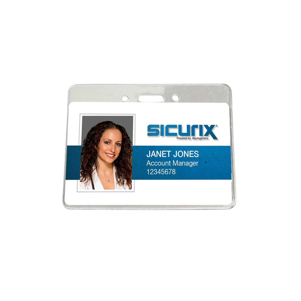 Sometimes bigger is better. This badge holder is perfect for government use and other slightly over-sized badges. Simply attach your ID card or badge to your person for easy identification with this security card holder. It's transparent and a horizontal badge holder. The holder is pre-punched and easily attaches to card reels, lanyards, chains or barbs. The plastic wallet provides protection and easy access for your ID badge. These badge holders are for ID cards up to 3 7/8 x 2 5/8". Pack of 50 large, horizontal card holders. Paper insert is not included.