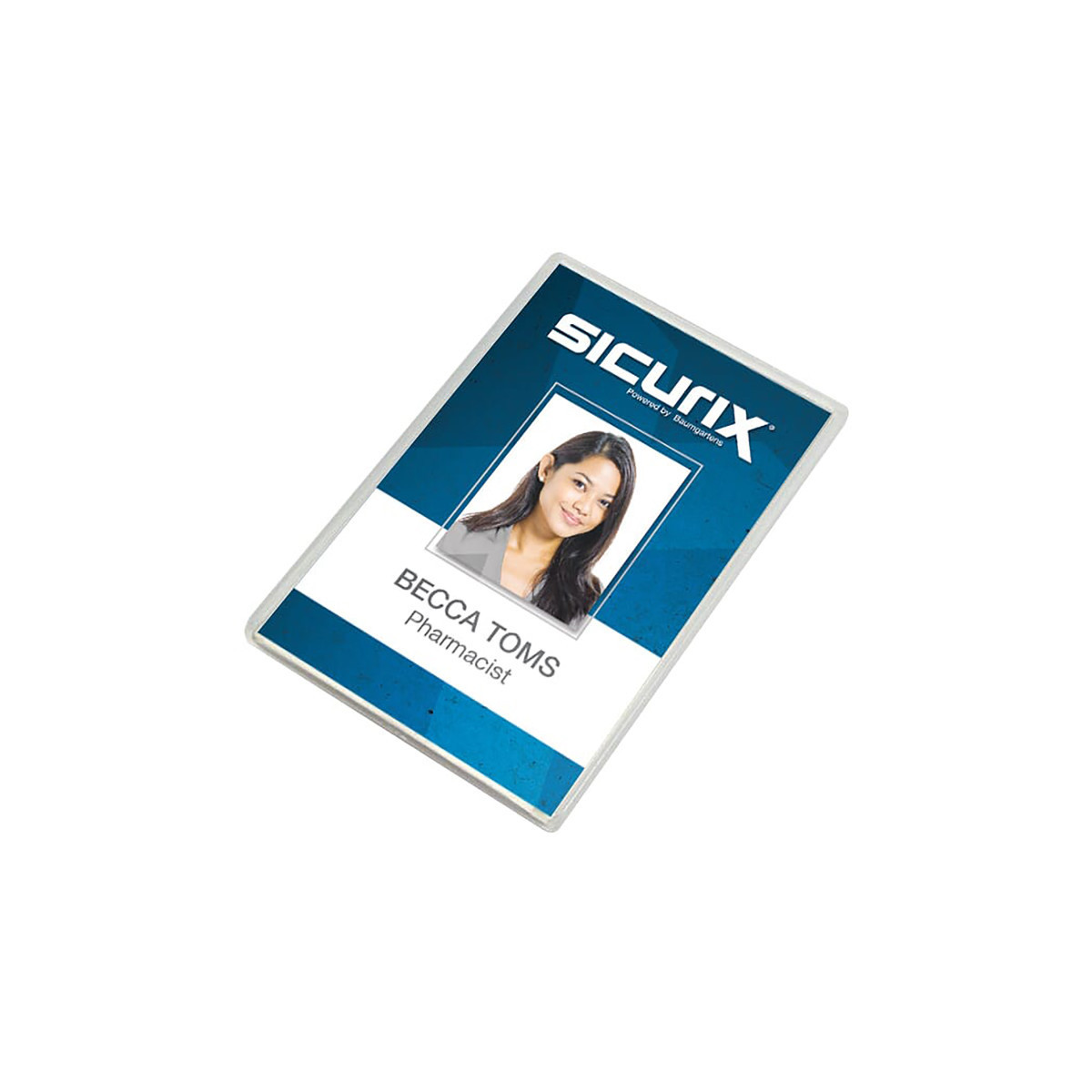 SICURIX Translucent Plastic Card Dispenser holds ID cards up to .30mil thickness, that's around 30 cards. The maximum card insert size is 2-1/8 x 3-3/8 inches. The dispenser provides protection and easy access to your ID, credit cards or business cards. Each card holder has a die cut hole in the back so it attaches easily to card reels, lanyards and chains. They are great for Mifare, mag striped and other ID cards. The notched lip gives you quick and easy access. Pack of 25 vertical card dispensers.