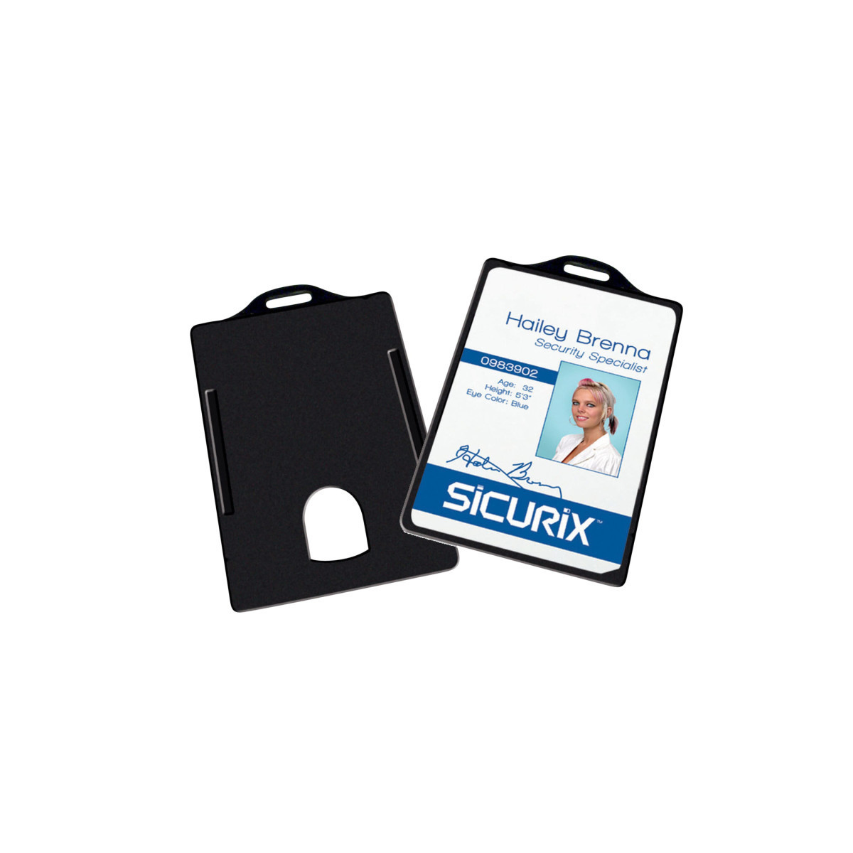 SICURIX Vertical Black Plastic Card Dispenser holds ID cards up to .30mil thickness, that's around 30 cards. The maximum card insert size is 2-1/8 x 3-3/8 inches. The dispenser provides protection and easy access to your ID, credit cards or business cards. Each card holder has a die cut hole in the back so it attaches easily to card reels, lanyards and chains. They are great for Mifare, mag striped and other ID cards. The notched lip gives you quick and easy access. This pack contains 25 vertical, black card dispensers.