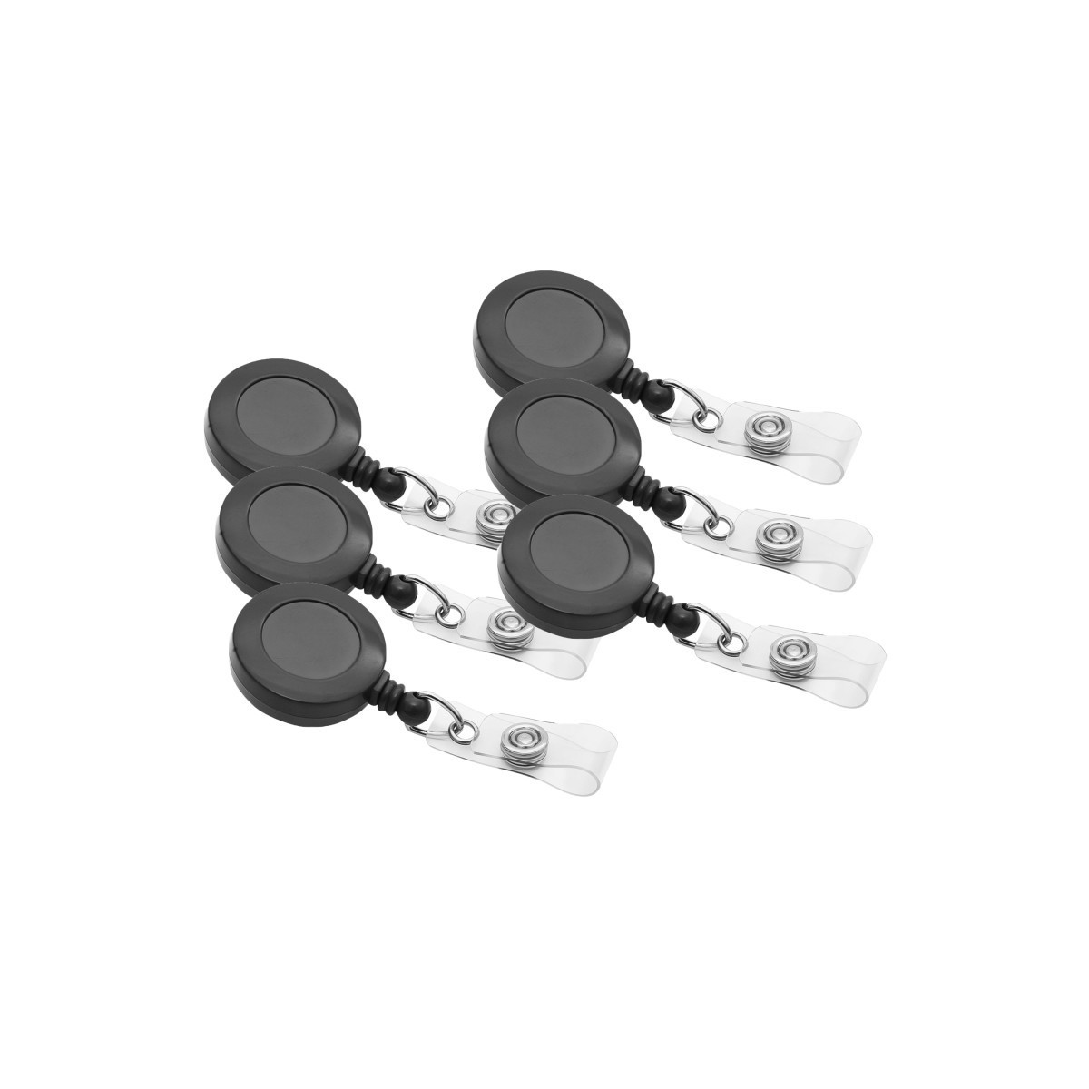 These compact, round, plastic card reels are convenient for displaying your ID or security badge. With an ID card reel, your badge or ID card stays securely on your person at all times so you can't lose it and it cannot be misused by unauthorized persons. The card reel has a conveniently placed swivel spring clip. Reel it out to show your badge to security or for easy use at the access panel. Because it's retractable you never have to take it off, which means you'll never forget where you put it. This black card reel is 30 inches and retracts automatically. Sold as a pack of 6.