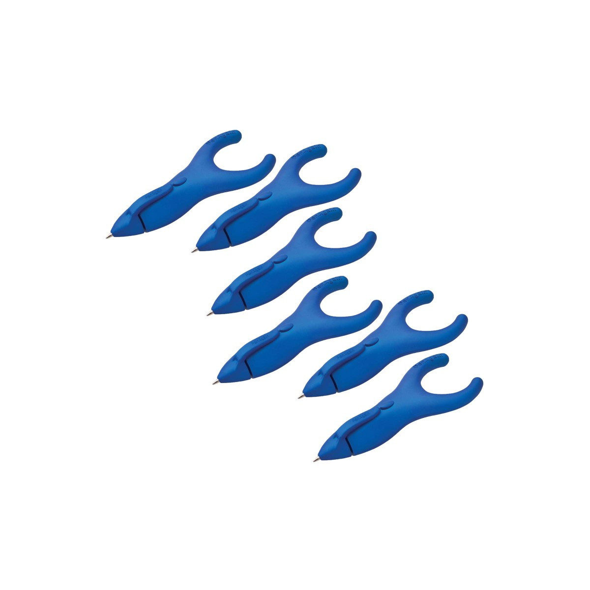 PenAgain Ergosof pen will make writing a joy. The wishbone shape design encourages the time-tested " tripod" finger grip. This grasp is not only comfortable but is also more ergonomic. Whether you are right or left handed, the Ergosof pen will prevent sore fingers and tired wrists. The dynamic tripod pen hold has been shown to help children focus on the content of their writing rather than having to worry about their control of the pen or their speed of writing. Now they can express themselves through writing with ease. The pen is retractable so you won't have to worry about leaks. It has easy to replace refills so that you're never short of ink. This pen's electric blue case makes it stand out above the rest. Helpful for Arthritis and Ehlers Danlos Syndrome patients. Retractable and refillable. Each pen comes with two bonus refills. Black Ink, medium/1.0mm. Sold as a pack of 6 pens.