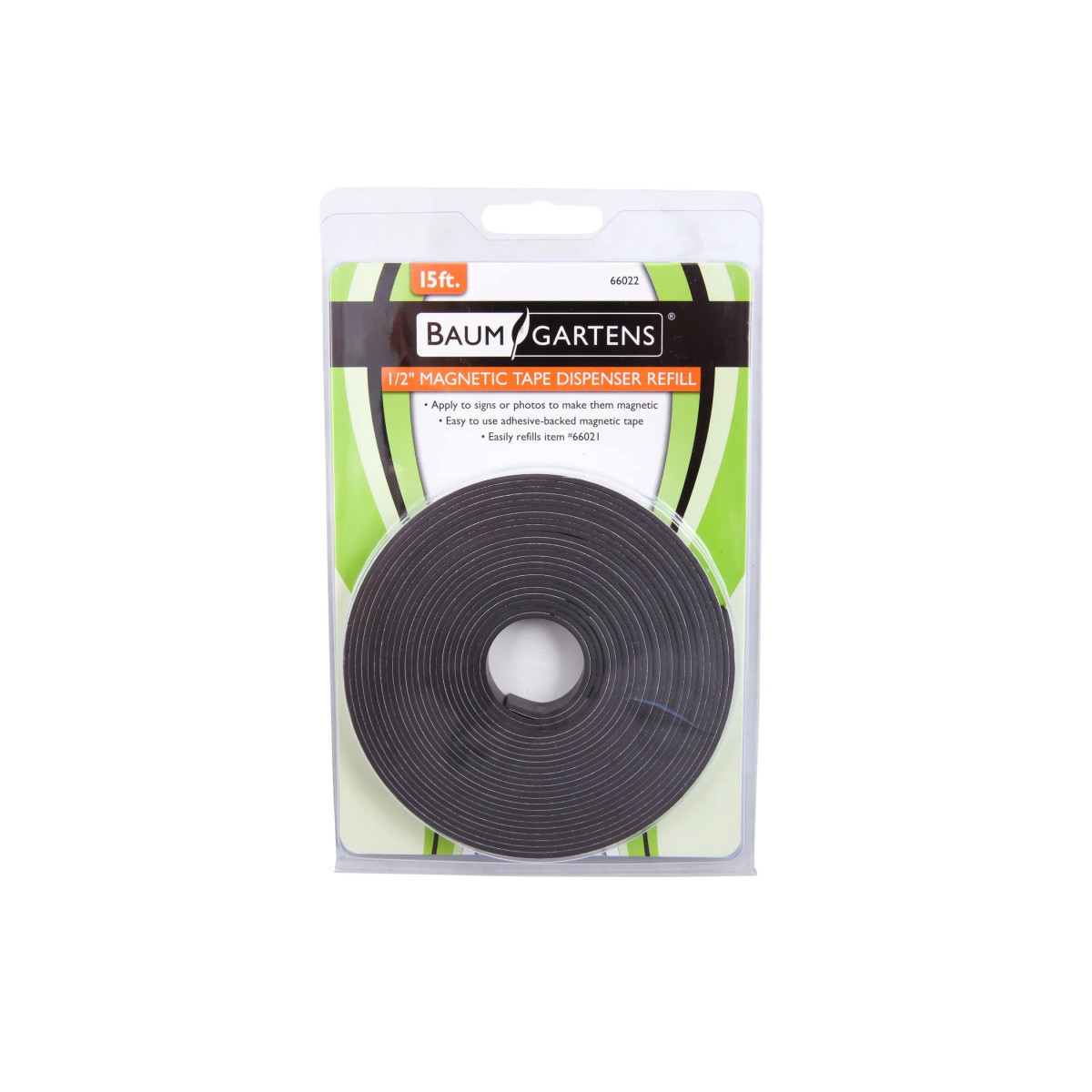 Need a magnetic surface? Now you can turn anything into a magnet with Baumgartens thick, black, adhesive - backed magnetic tape. It cuts easily to any size with scissors or a knife. Simply peel off the backing and attach. This magnetic tape has lots of uses. It's great for arts and craft projects; you can stick it to photos, pictures, business cards to brighten up your office, dorm room, home or classroom. Use it in the garage to stop nails and screws from going astray. Cheer up your cubicle, locker or filing cabinets with custom made magnets. This item is made from materials that are safer for children. This item consists of a 15 foot 1/2" refill for the roll and cut dispenser.