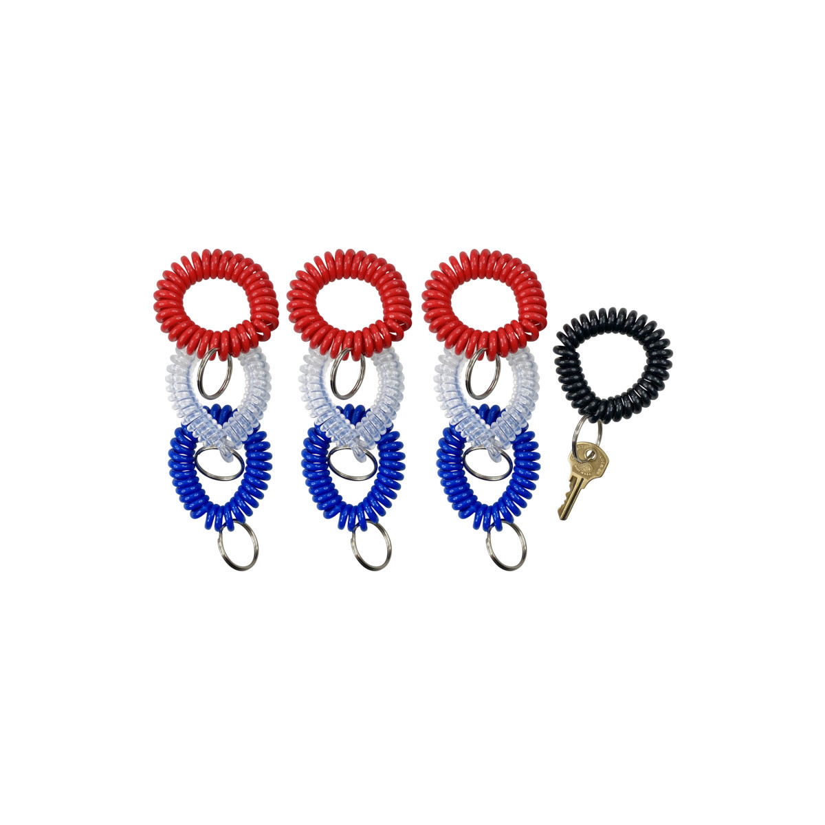 Tired of searching for lost keys? Never lose them again with baumgartens key ring wrist coil. Brilliant colors make this key chain easy to keep up with. The flexible plastic coil, with split ring attached, allows you to wear it easily around your wrist during your morning run or swim, or when your hands are full. It gives you easy access to your keys, which makes it a smart choice for any occasion. Sold as a pack of 10 wrist coils in assorted colors (no color choice).