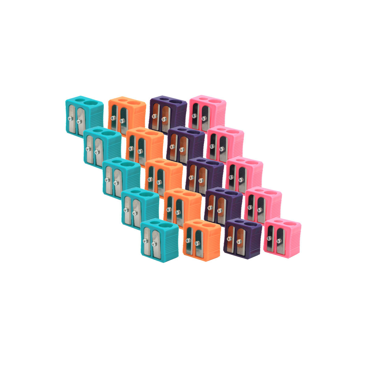 Brighten up any office or cubicle and always be ready to make your point with Baumgartens dual hole plastic pencil sharpener. Great for students, draughtsman, carpenters, crafters, artists, architects and anyone else who frequently uses a pencil. The oval, plastic sharpener has a high quality, razor-sharp blade that will keep your point valid and won't keep breaking your lead. The sharpener is made for standard and larger pencils. The rectangular body is easy to grip and comfortable to hold. The sharpener is 1 inch long, making it perfect for carrying in your pocket, pencil case, school kit, backpack or briefcase. Keep them handy in the classroom and the office and even at home. Sold as a pack of 20 sharpeners in assorted colors (no color choice).