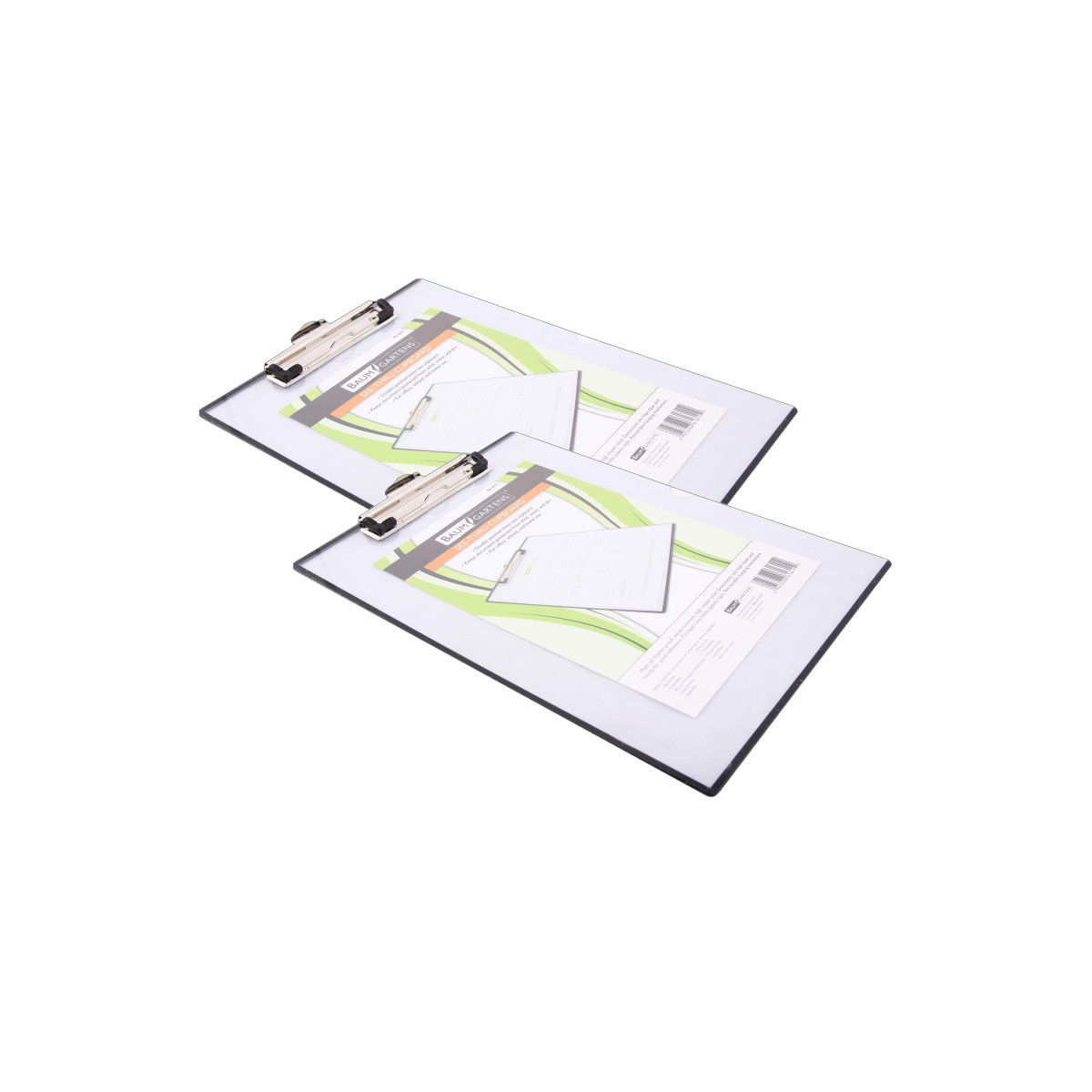 Perfect for use in the classroom, home, warehouse or on the construction site, this transparent, dry erasable clipboard has a strong metal sting clip for securing documents. You can even hang it up for quick reference. The clipboard is slightly larger than letter size. Insert your information between the clear panels of this "see thru" clipboard and you will be able to trace for handwriting practice or quick reference to whatever you need. It's wonderful for keeping documents clean and protecting them from the elements and wear. This item meets or exceeds RoHS compliance for lead, mercury, bromine, chrome and cadmium. Sold as a pack of 2 clipboards.