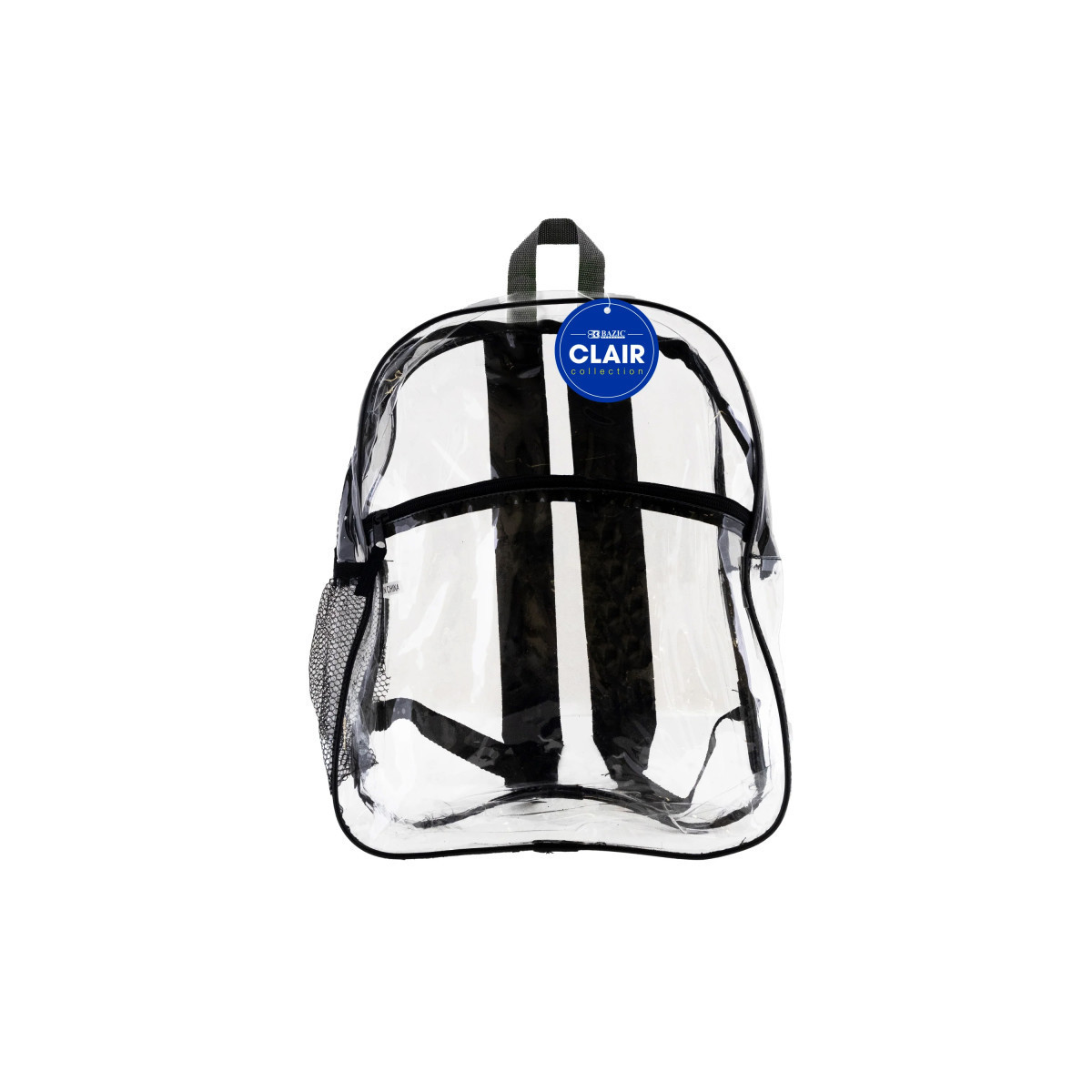 This is a clear plastic backpack with dimensions of 15" x 12" x 4" when expanded. Great for stadium visits and see-through for safety. Padded adjustable shoulder straps for comfort. Easily carry books, binders, laptops, tablets, travel accessories, clothes, and cables. Unisex: Suitable for both Men and Women. Zipper closure. Features 1 large main compartment, 1 medium front compartment, 1 top carrying handle, and 1 side mesh pocket fits a water bottle or compact umbrella. Made of waterproof and strong 0.25mm PVC plastic. Ensure secure & long-lasting usage. Feature zipper with pulley for opening and closing the bag easily. Cute stylish backpacks for college and high school students. See-through and quickly see what you want, no need to rummage. From TSA to stadium security guards, pass through inspection checkpoints with ease. Breathable and adjustable shoulder straps relieve the stress on the shoulder. Light and efficient! Perfect gift for your family, friends, boys, and girls!