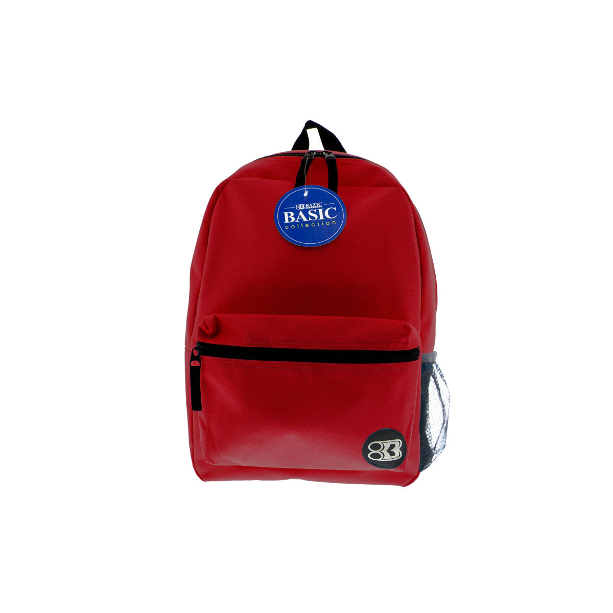 This 16" school bag features 2 compartments: one large compartment mainly for larger items such as text book, binders, and laptops, the other compartment is a smaller compartment located in front, mainly for smaller items, such as cell phones, keys, and hand sanitizer. Both compartments have zipper closure. There are 2 adjustable shoulder straps nicely padded for comfort when carrying the backpack. There are 2 zipper pulls for the large compartment, and 1 zipper pull for the smaller compartment. There is a nylon handle on top of the backpack, convenient for hanging the backpack on hook outside of classrooms, or any hanger. Bazic Products' logo is stitched in the front, on the bottom right of the small compartment for recognition.