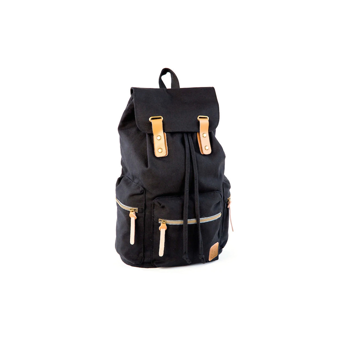 The backpack features a padded back and adjustable shoulder straps to provide exceptional comfort, reducing strain and ensuring a comfortable fit, even during extended wear. This 18" laptop rucksack features canvas fabric with vegan leather details, combining aesthetics and sustainability in a chic package. As well as 210D polyester interior for easy cleaning. When expanded, measures: 13" x 7" x 18". Featuring 1 large main compartment with a drawstring and magnetic closure to safely secure your belongings. And 1 front and 2 side accessory pockets with metal zippers and vegan leather pull. The padded fleece-lined laptop sleeve inside the main compartment shields your laptop from impacts and scratches, keeping it safe and snug. Sleeve fits laptops up to 17 inch. Constructed with a padded reinforced bottom to ensure longevity, making it a perfect companion for school, everyday use, traveling, or any adventure.