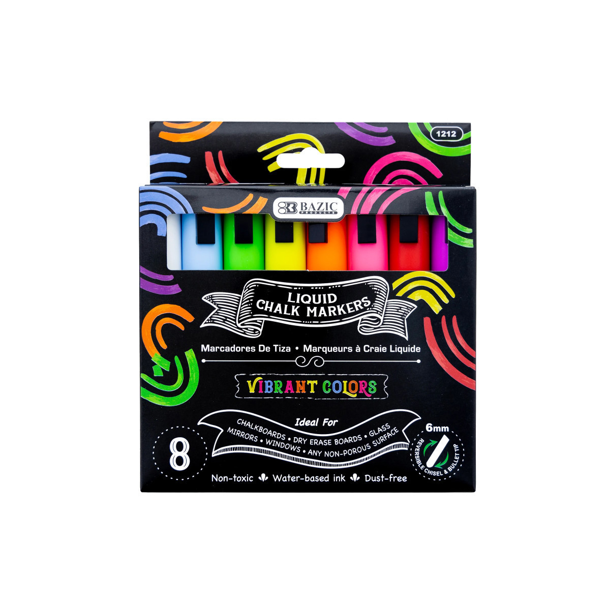 These wet erase chalk markers offer versatile use, perfect for a wide range of applications including classrooms, businesses, restaurants, cafes, bistros, décor, arts and crafts, and event signage. They are great for teachers, students, and artists. The markers come in assorted bold and vibrant colors that stand out on any surface, providing creative flexibility for endless possibilities in lettering and drawing. Featuring a removable, reversible 6mm tip design, the markers allow users to alternate between chisel and bullet tips for precise lines and broad strokes, meeting various drawing and writing needs. These markers are ideal for use on non-porous surfaces such as chalkboards, dry erase boards, glass, mirrors, and windows, ensuring easy cleanup without leaving residue. It is recommended to test on small areas first. The water-based ink makes the markers effortless to wipe off—simply use a damp cloth to start fresh, making them convenient for frequent updates and ensuring an easy cleanup. Each pack includes 8 markers in vibrant colors.
