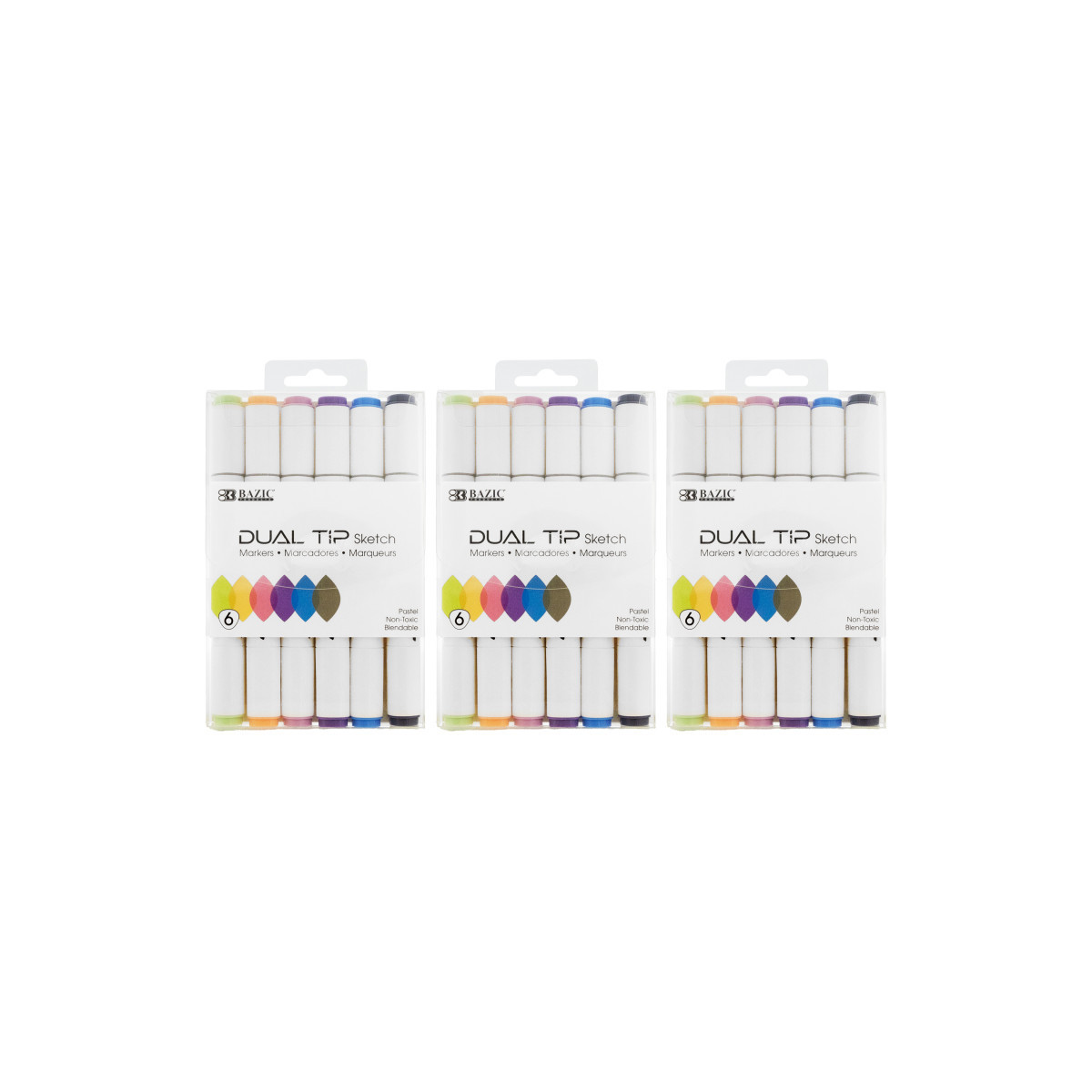 With the double-ended design, you can use 3mm brush tip for sweeping, details, and calligraphic, or the 6.5mm broad strokes chisel tip for quickly color in large areas. Alcohol brush markers are more durable and do not fray easily. *NOTE: Alcohol Based Markers like ALL other brand alcohol markers, will Bleed through regular coloring paper, except very thick paper. Perfect for card making, doodling, and hand-lettering. Excellent smudge-proof and waterproof qualities on most surfaces, work well on ceramics, plastic, or rock. Creative art craft supplies present for teachers, kids, friends, Christmas, Thanksgiving, and Birthdays. High-quality ink blends seamlessly to create beautiful coloring effects. Triangle barrel design provides both a comfortable grip and conveniently prevents markers from rolling off desks and tables. Ideal for professional art and craft. Each pack includes 6 markers in pastel colors. Sold as 3 packs for a total of 18 markers.