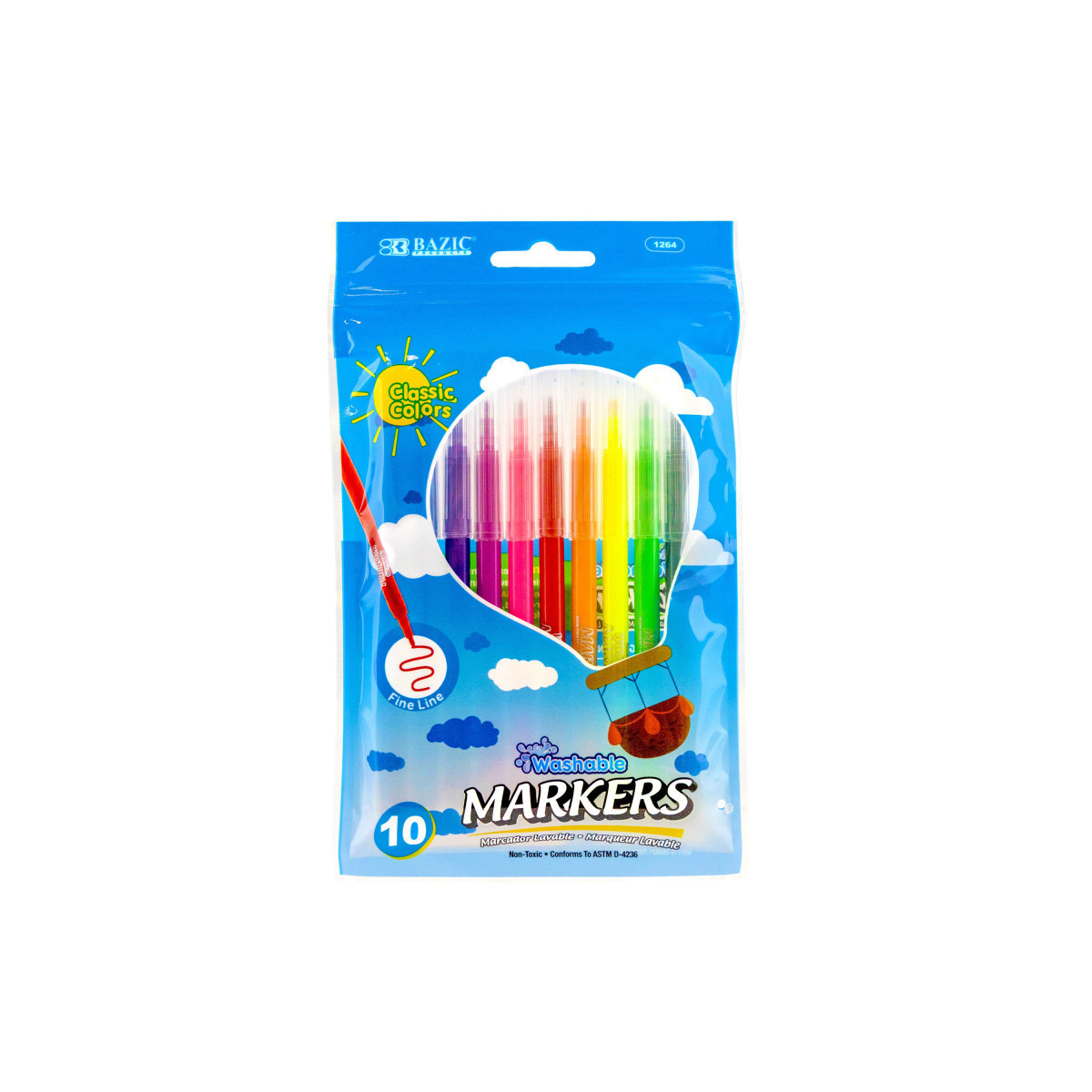 Fine, durable tips are great for precise, detailed coloring in small areas of intricate designs. Feature zip closure on the bag for convenient storage. A perfect gift for kids to carry during the holiday travel. Excellent for coloring, drawing and writing. Dries quickly and doesn't bleed through most paper including thin papers; smear and smudge free. Durable tip lasts on rough surfaces. These water color markers are water-based and safe for children. Most clothing can be washed in warm or hot water. Do not use pre-wash or chlorine bleach. Can be perfectly used for writing, drawing and coloring especially in the schools by the children. The markers are also used in colleges, offices and several other different places. Each pack includes 10 markers.