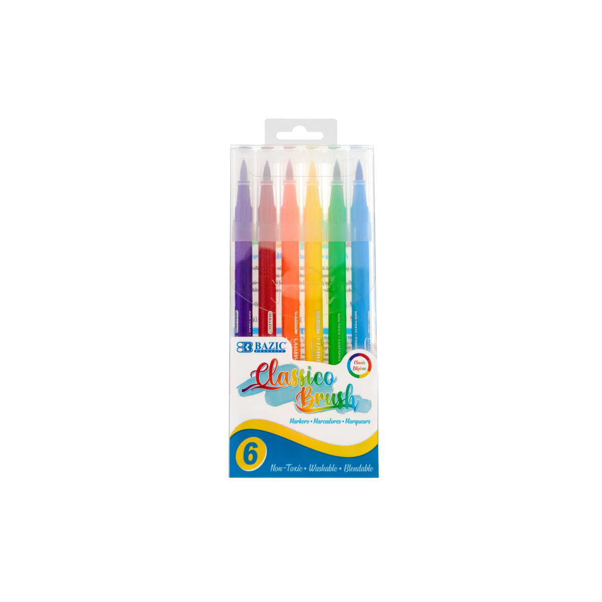 BAZIC Products® Washable Brush Markers, 6 Classic Colors