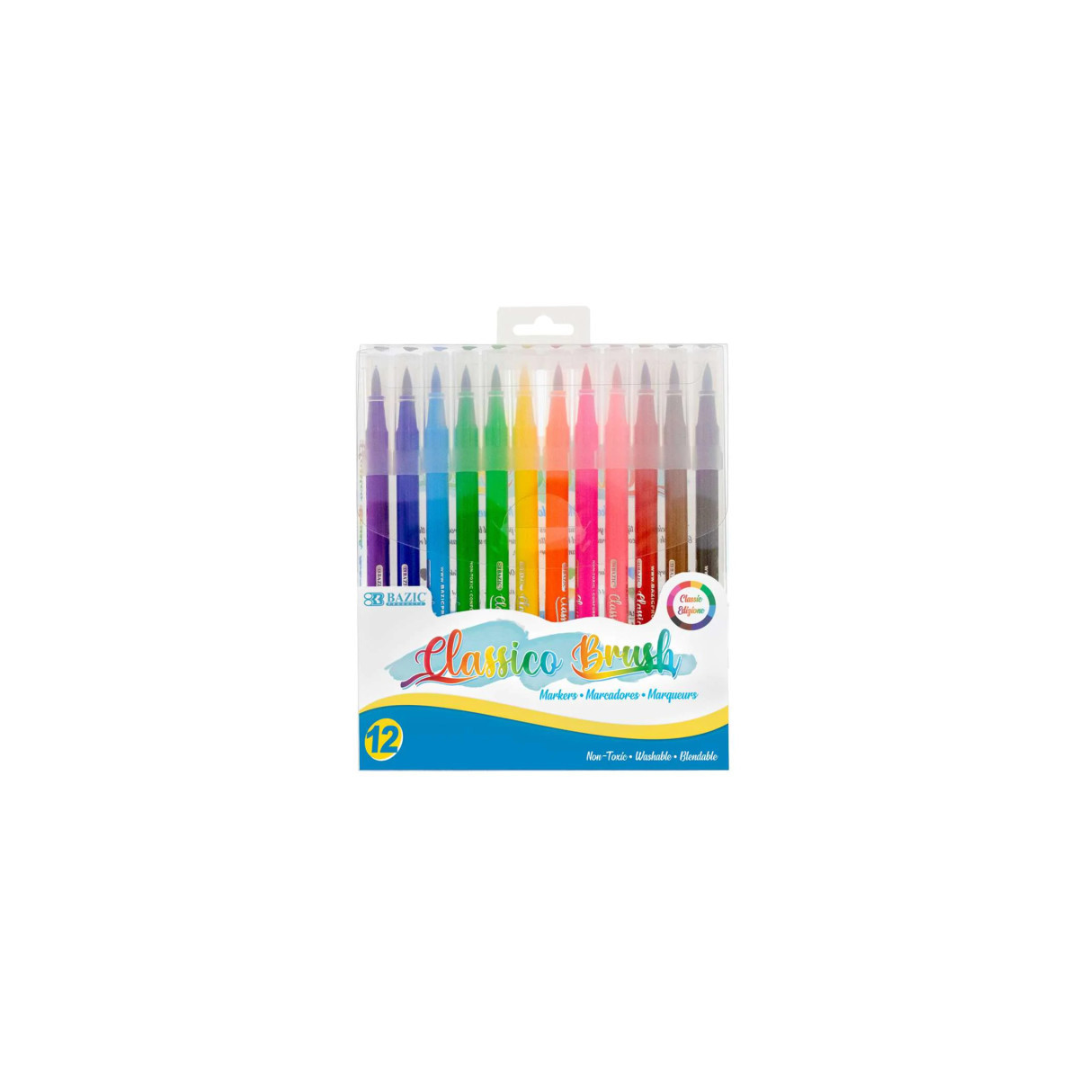 These soft brush markers have 4.5mm brush tip for sweeping, details, calligraphic, broad strokes, or quickly color in large areas. Can be dispersed and mixed with water. Excellent smudge-proof. Smooth flow brush pens accommodate all graphic styles. Perfect for coloring books, card making, and hand-lettering. Each pack includes 12 markers.