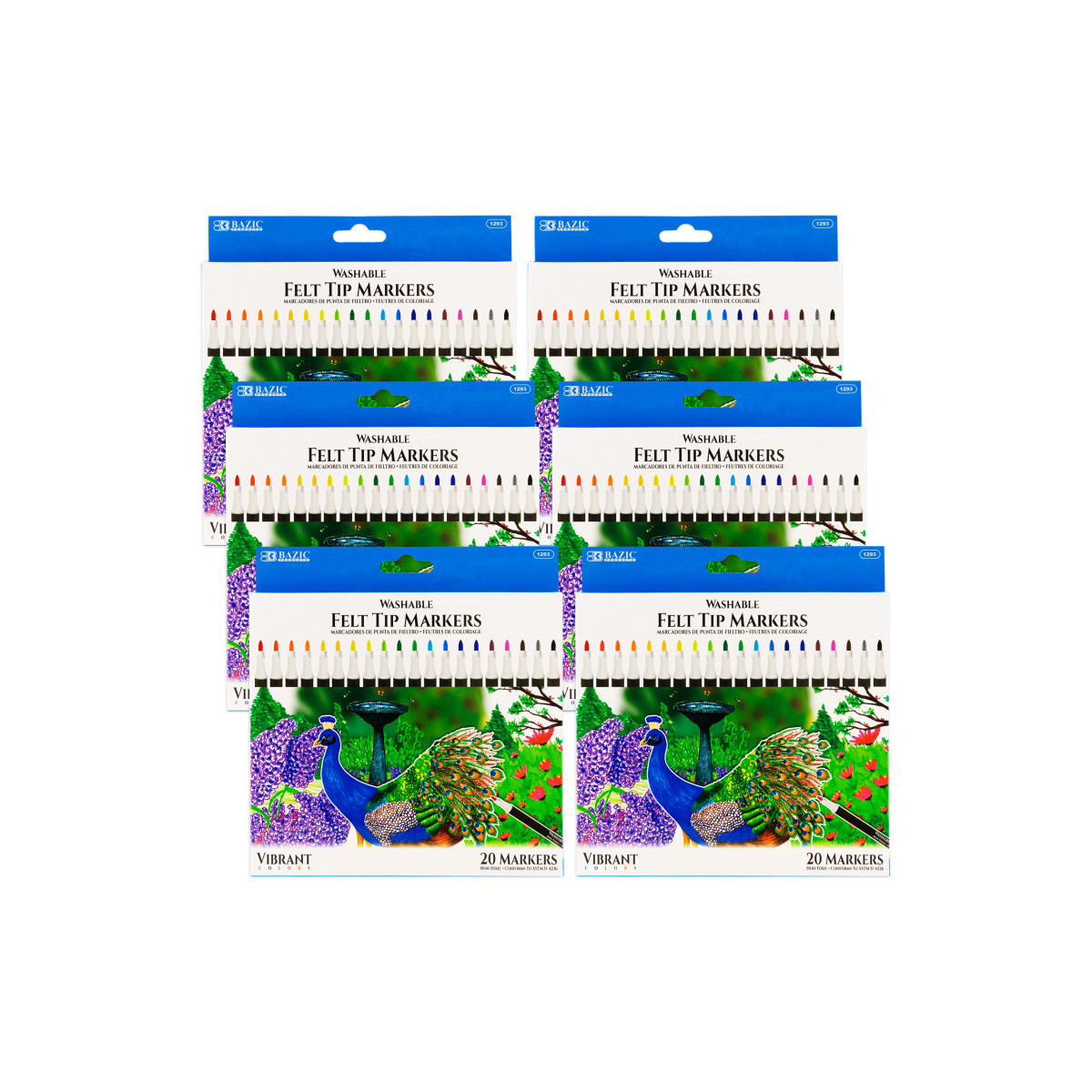 These water-based markers have a durable 2.5mm fiber tip for precise and detailed coloring. Fine line tips ensure precision while coloring in small areas of intricate designs. Excellent smudge-proof. Smooth flow brush pens accommodate all graphic styles. Perfect for coloring books, card making, and hand-lettering. Quick-dry, no trouble with smudging or bleeding, no ink flow issue or skipping. Stored compactly in clear plastic box. It is convenient for kids to pick out, use, and place it back. Creative art craft supplies present for teachers, kids, friends, Christmas, Thanksgiving, and Birthdays. High-quality ink blends seamlessly to create beautiful coloring effects. Each pack includes 20 markers. Sold as 6 packs for a total of 120 markers.