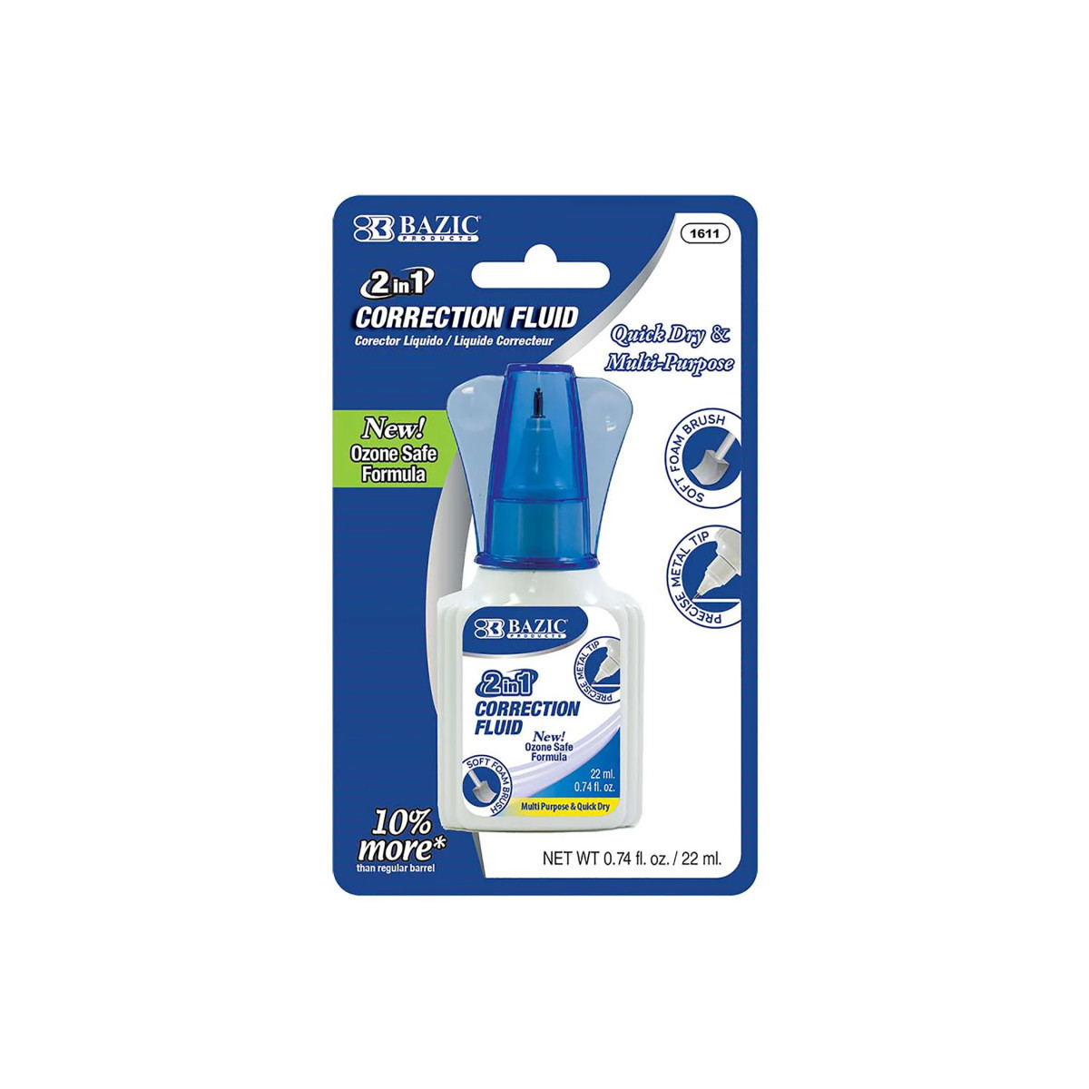 The 2 in 1 Correction fluid allows for both precise and wide coverage. The needle-point tip allows you to precisely cover small areas, fine lines, and details. The foam brush applicator makes application easier. Our faster-drying formula features bright white fluid that blends well with white paper and covers handwritten and printed ink, even permanent marker. This product is great for correcting most pens, markers, and ink from fax, computer, and photocopy printouts, photocopies, typewritten documents, and handwritten notes. We've got you covered with our assortment of correction fluids, tape, and pens. You no longer need to worry about redoing your work due to a minor mistake. The fluid dries quickly to a smooth finish, allowing you to rewrite over the mistake. Remember to shake well before using and then stroke across the paper without dabbing. Allow it to dry before writing over it.