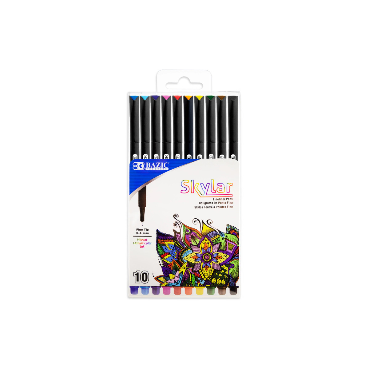 Featuring an ultra-fine 0.4 mm tip, these pens allow for intricate detailing and clean, fine lines, catering to artists, illustrators, and users who require precision. They offer effortless control for accurate writing or drawing. Our fiber pen features a metal nib for added durability, ensuring it can withstand prolonged use without compromising performance. Enjoy a longer-lasting writing instrument with our pens. Dive into a spectrum of vivid ink colors that extend beyond traditional black, offering more creative possibilities for artists and adding a dynamic flair to writing tasks. The ink is water-based, providing a smooth and quick-drying writing experience. This formulation prevents bleed-through and smudging on most paper surfaces, ensuring efficient and error-free writing. This fiber pen is versatile for drafting, sketching, note-taking, or detailed artwork, making it suitable for both creative and professional tasks. Each pack includes 10 pens.