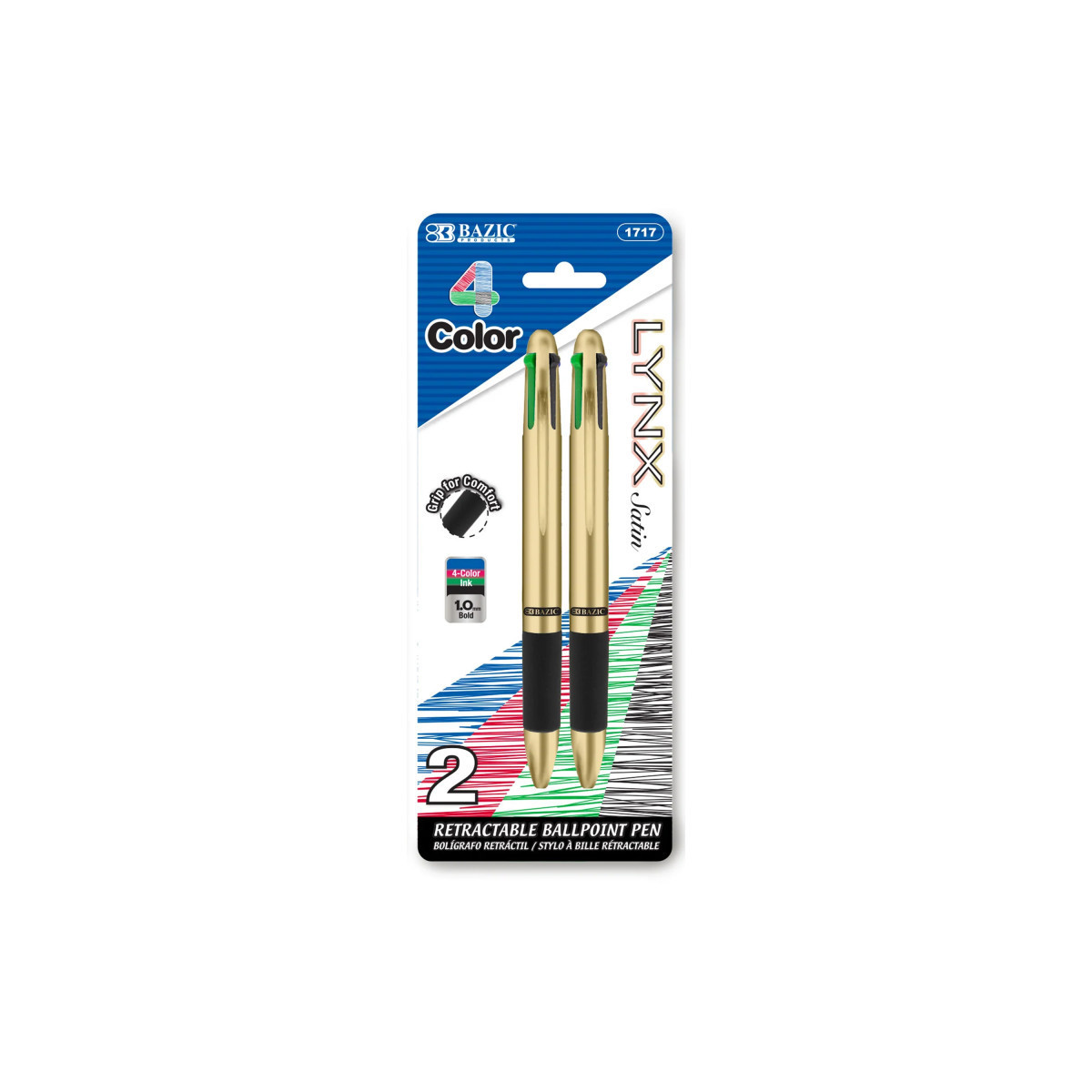 - LYNX SATIN TOP 4-COLOR PEN. Each pack includes 2 Retractable 4-Color Ballpoint Pens; Ink Color: Black, Blue, Red and Green. Barrel colors come in assorted colors