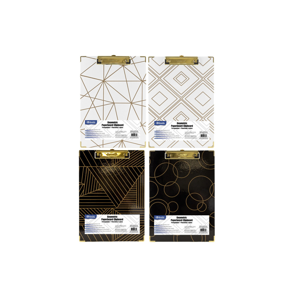 This all-purpose clipboard conveniently holds forms and documents and provides a sturdy, portable writing surface. Features a stainless steel, low profile clip with rubberized corners that ensure a secure grip. Made from durable paperboard which is perfect for years of use. Smooth surface, rounded edges, and corners provide a comfortable hold. Stackable and great for daily use in office, work, warehouse, and school. Measures 12-1/2" x 9". Sold individually in 4 assorted geometric designs (no choice upon ordering).