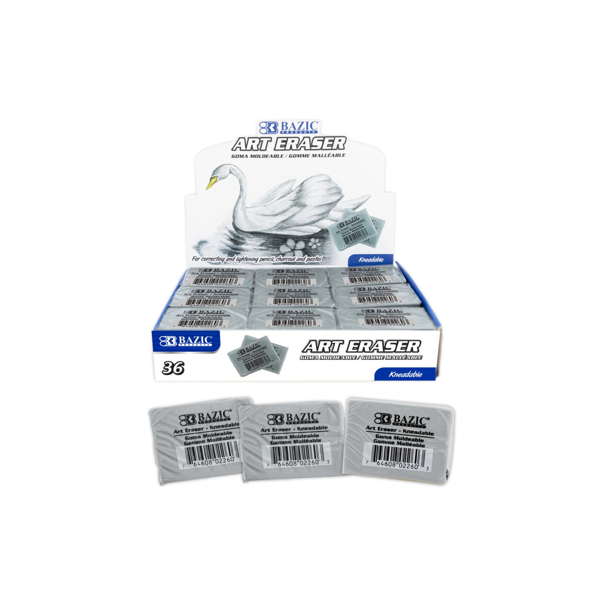 This moldable eraser can be easily shaped into various forms and sizes, providing precision for targeted erasing or blending tasks. You can mold it to suit your project's needs, with the eraser measuring 1.75 x 1.25 x 0.25 inches before shaping. Versatile in its use, it can blend, highlight, shade, smooth, and brighten sketches and drawings, making it suitable for graphite, charcoal, and colored pencils. It's perfect for artists, illustrators, designers, and more. The eraser is self-cleaning—simply pull and knead the dirty parts until the eraser absorbs them, ensuring repeated use without leftover residue for every project. Designed to be non-abrasive, this kneaded eraser removes and lightens marks cleanly without damaging the paper, making it ideal for delicate art projects and intricate sketches. Each pack includes 36 erasers.