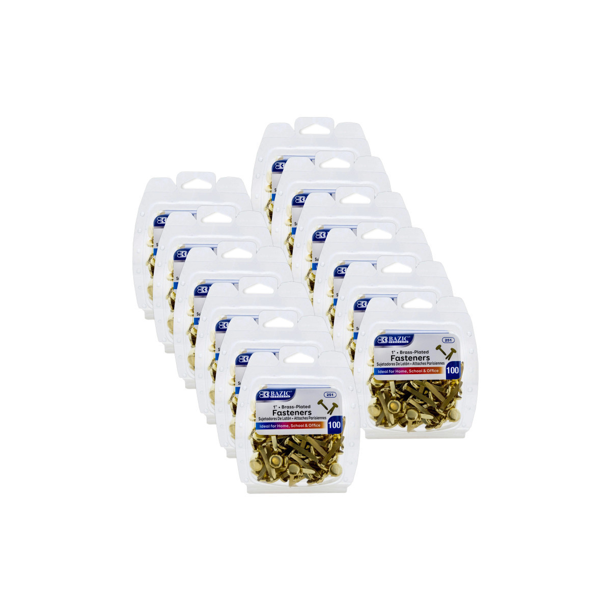 The fasteners measure 1 inch long with a 1 cm diameter head. The brass plating enhances the aesthetic appeal and adds extra protection, making these fasteners more durable and ideal for long-term use. Designed for convenience, these fasteners feature quick and hassle-free application. The well-defined pointed shafts make piercing papers simple and effortless. They fit standard hole punches and a range of paper sizes, seamlessly integrating them into your existing office supplies, making them a top choice for everyday use. The brass plating and round-head design add a professional and polished appearance to documents. The elegant finish makes them great for presentations, reports, and other professional documents. Our fasteners are versatile tools for staying organized but are also great for art and crafts. They offer flexibility for binding loose papers, creating booklets, attaching photos, projects, and much more. Each pack includes 100 fasteners. Sold as 12 packs for a total of 1200 fasteners.