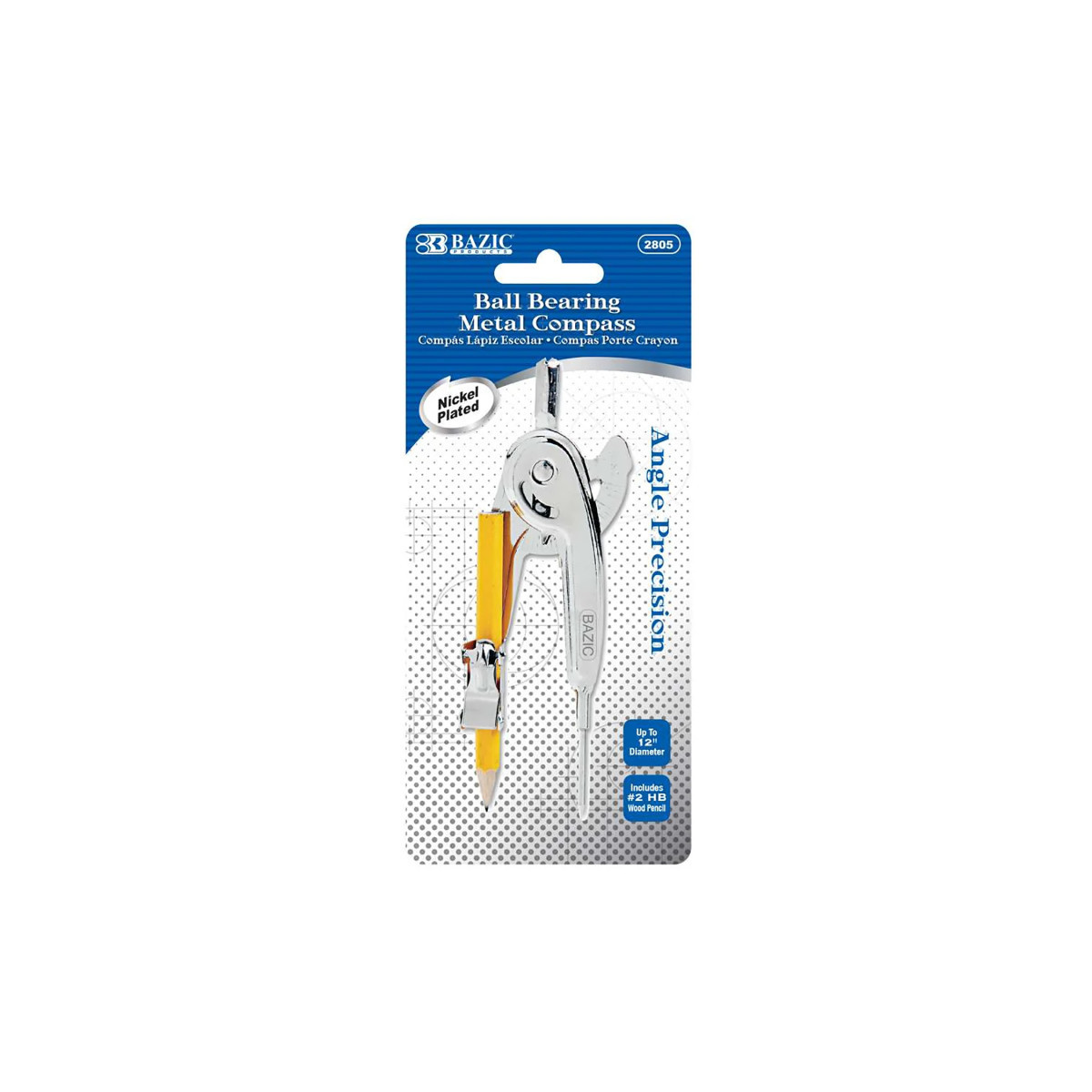 Constructed of steel, this compass withstands bending under pressure to maintain accuracy, ensuring long-lasting use. Its metal construction and exquisite mechanism provide smooth operation. Featuring all-metal construction and nickel plating, this compass boasts a scale-arm and easy-grip top control with a two-sided 6-inch / 15-centimeter measuring capacity. The metal point allows for drawing circles up to 12 inches in diameter. It includes a 3-1/2" #2 HB golf pencil with a secure lock for quick adjustments as needed. This compass is great for drawing arcs, circles, divide gauges, dividing lines, and measuring sizes, making it perfect for precise drawings. Use it to trace and draw perfect angles, circumferences, graphs, and designs with ease. It is excellent for use in school, office, studio, or at home, serving as the best circle-drawing tool for students, artists, mathematicians, carpenters, engineers, architects, and designers.