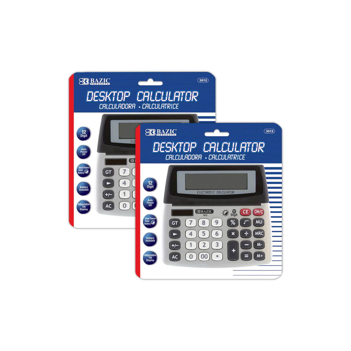The 12-Digit Dual Power Desktop Calculator with adjustable display takes up little space on your desktop and fits easily into your briefcase or desk drawer. Features dual power, solar and battery, with auto power off. Sold as a pack of 2 calculators.