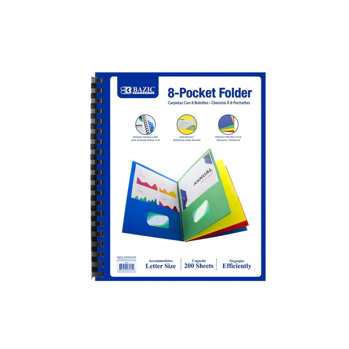 - FILE ORGANIZER. 8-pocket portfolio comes in assorted colors. An extremely useful product for presentations, organizing or arranging papers, files or other similar items.