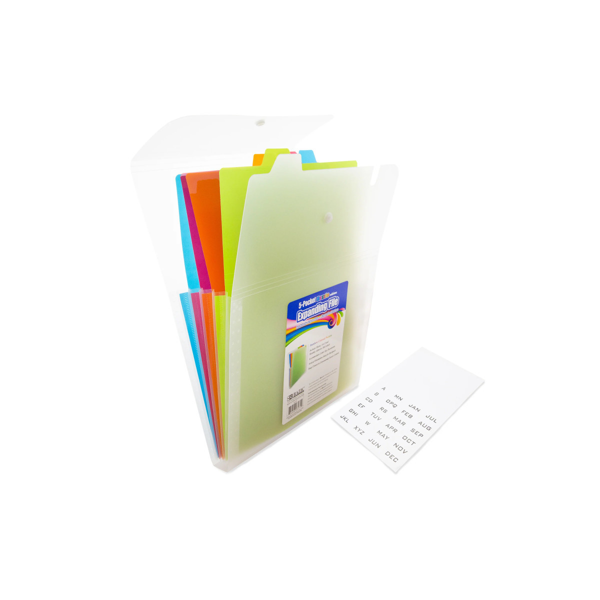 This is a vertical expanding file with 5 color coded pockets, great to carry in backpack as it'll go in and out easily without getting caught like the typical horizontal ones. Safe & Non Toxic. Made from high-quality Polypropylene (PP). Measure: 11" x 13" x 1". Expandable with 5 pockets. Vertical design for easy document insertion. Comes with rainbow colored pockets to neatly divide documents and papers to quickly find later. Also includes small blank, A to Z, and monthly adhesive tab labels to help classify by subject. Makes organizing simple and fun. Organize your paper, important files, contract, sales report, presentation, receipt, checks, bills, documents, vouchers, cards, homework, and assignments. Large capacity folder with dividers is your good assistant in your office life. Sturdy and non-toxic poly portfolio to safely store paperwork and documents all in one place. Lightweight, flexible, tear resistant, and waterproof. Holder features snap closure for quick access and safe storage of your document. For office, school, home, travel, or business trips.
