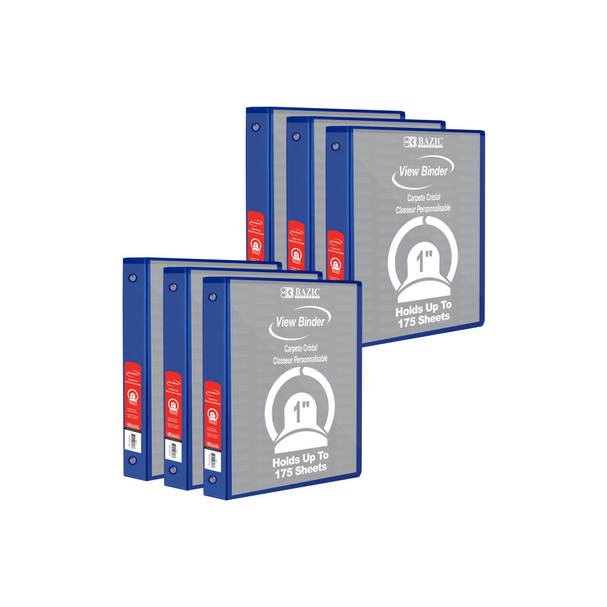 BAZIC Products® 3-Ring View Binder with 2 Pockets, 1", Blue, Pack of 6
