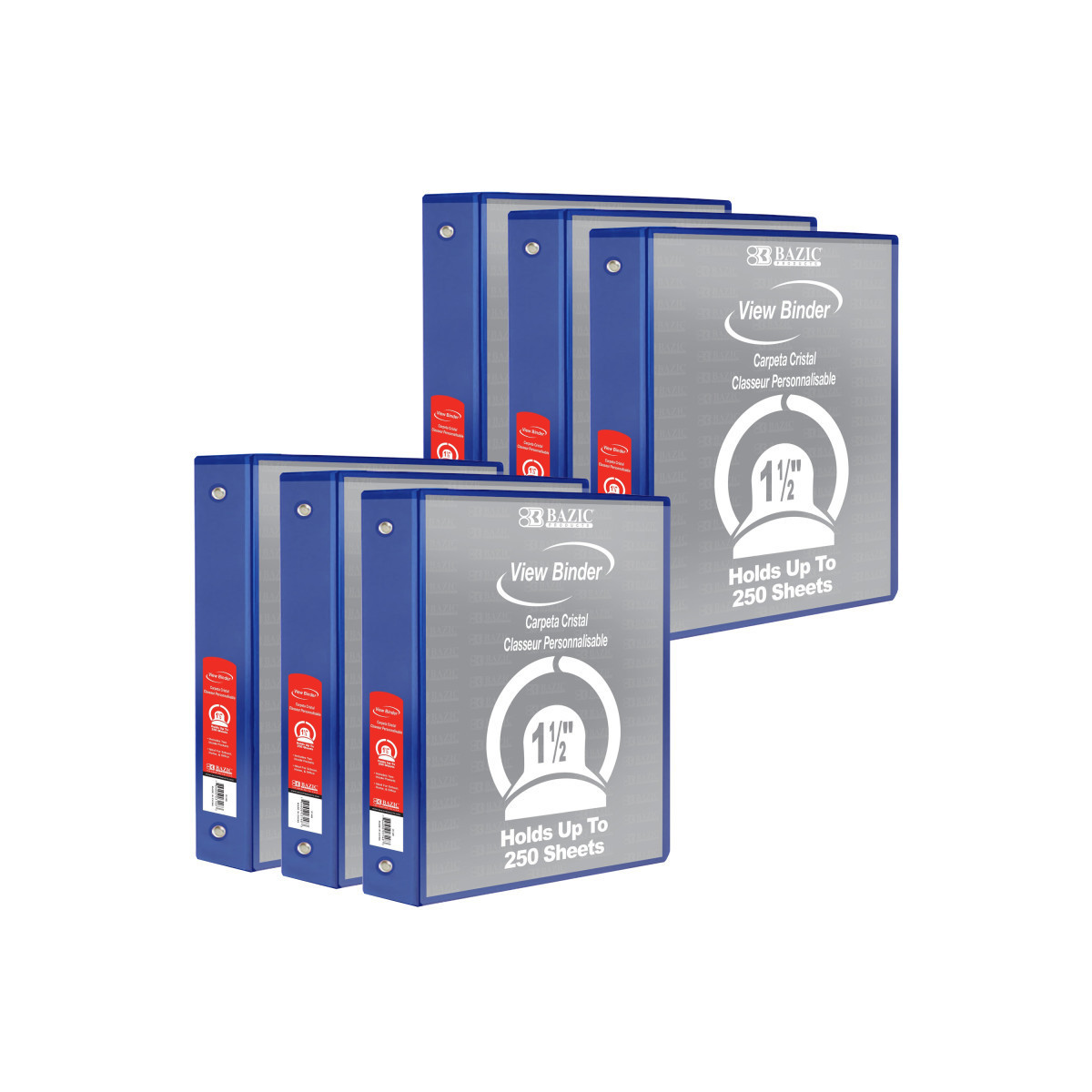 BAZIC Products® 3-Ring View Binder with 2 Pockets, 1.5", Blue, Pack of 6