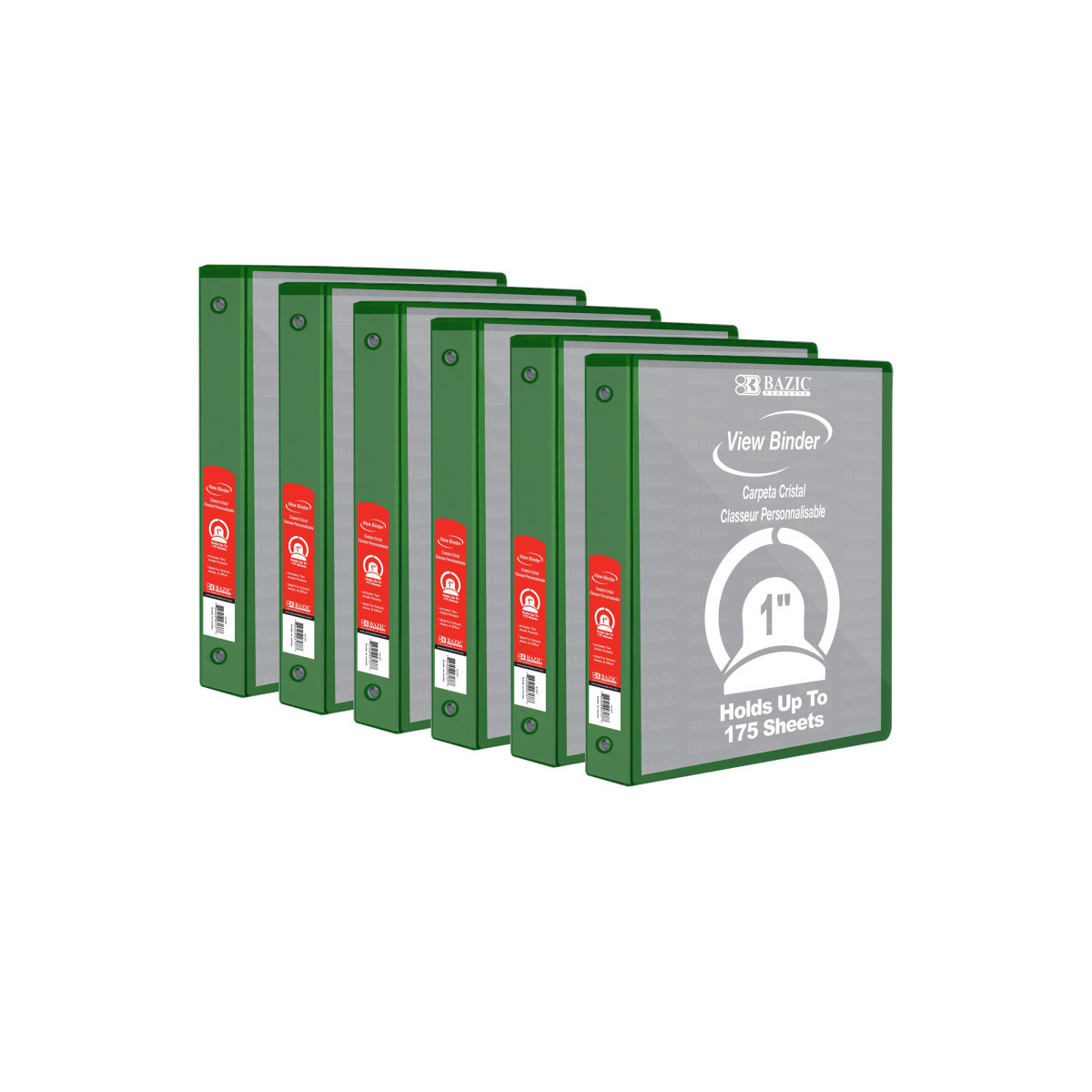 BAZIC Products® 3-Ring View Binder with 2 Pockets, 1", Green, Pack of 6