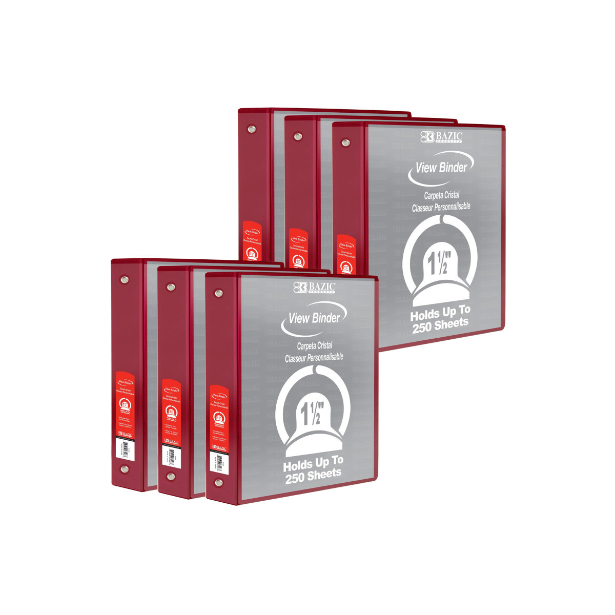 BAZIC Products® 3-Ring View Binder with 2 Pockets, 1.5", Burgundy, Pack of 6