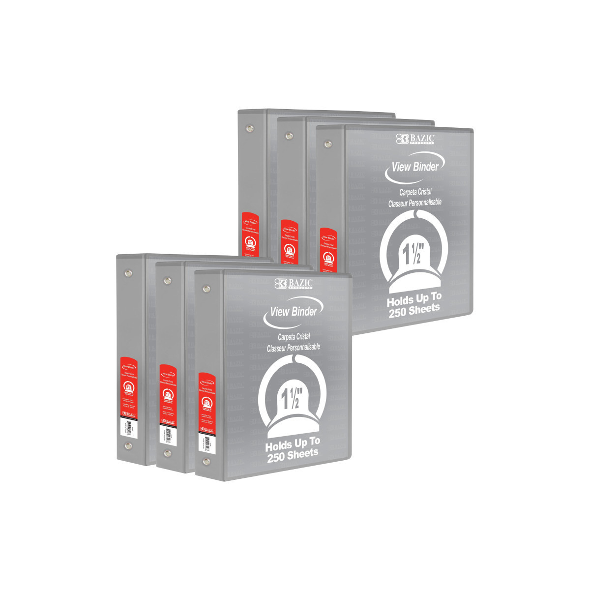 This 1.5 inch hard cover binder features a clear view on the front, back and side so you can customize! Each binder can be easily identified when a piece of paper with artwork or title is inserted from the opening on the top. This binder has 3 metal rings that are "O" shape, attached inside on the spine of the binder. Sold as a pack of 6 binders.