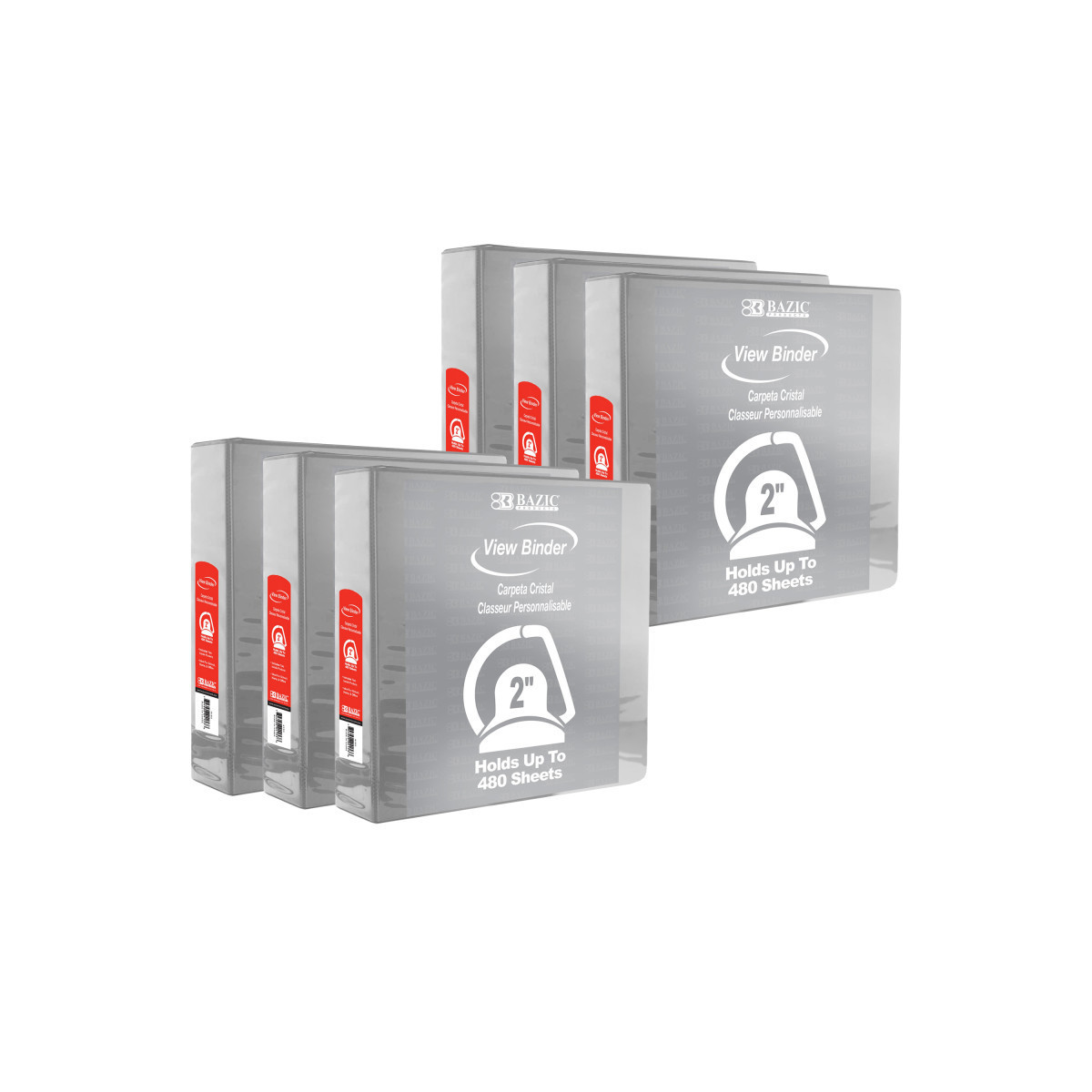 BAZIC Products® Slant D Ring View Binder with 2 Pockets, 2", Gray, Pack of 6