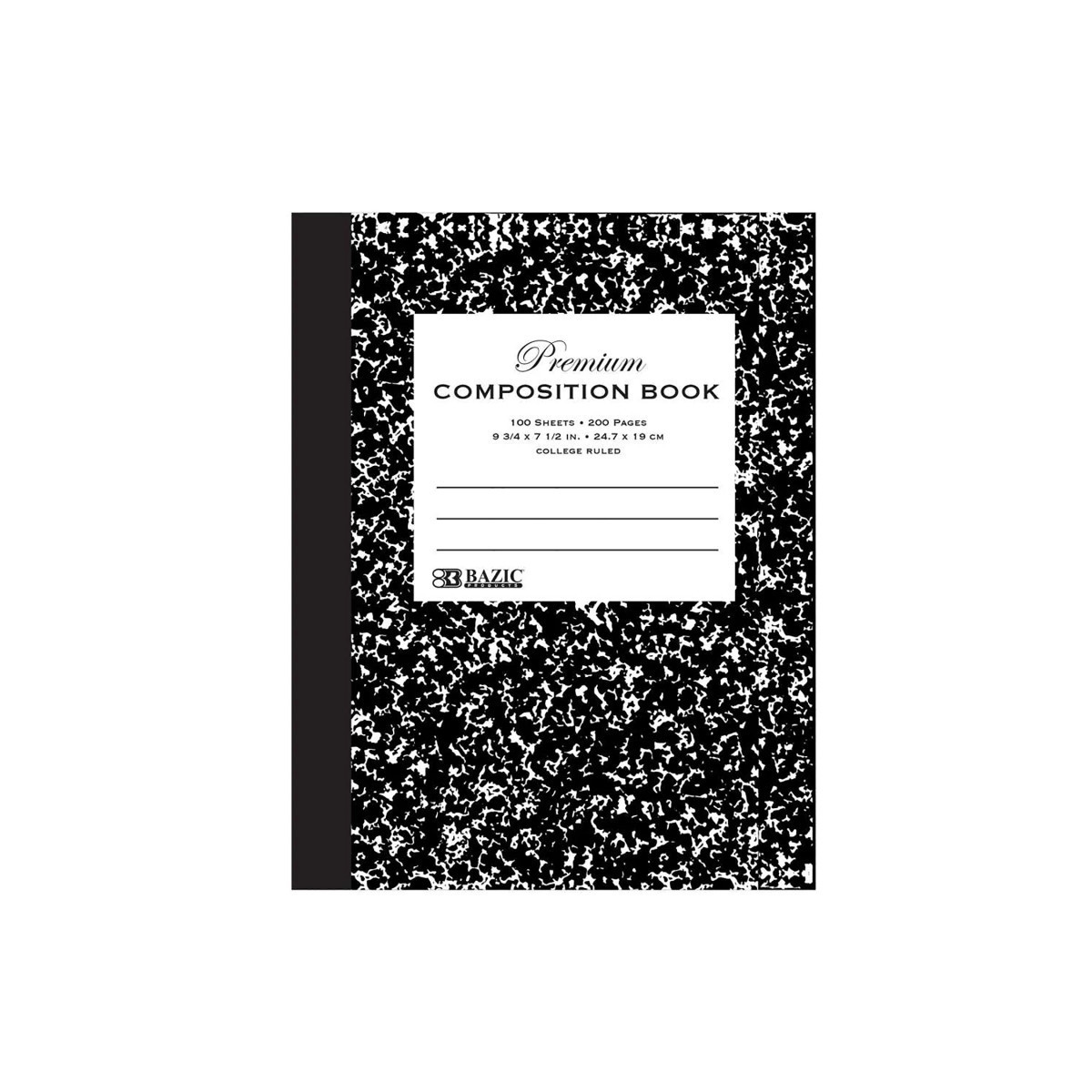 - SIMPLY NOTETAKING. Black marble composition notebooks come with 100 sheets of college-ruled paper. Ready for any assignment and take it with you on the go! Overall Size: 9.75" x 7.5".