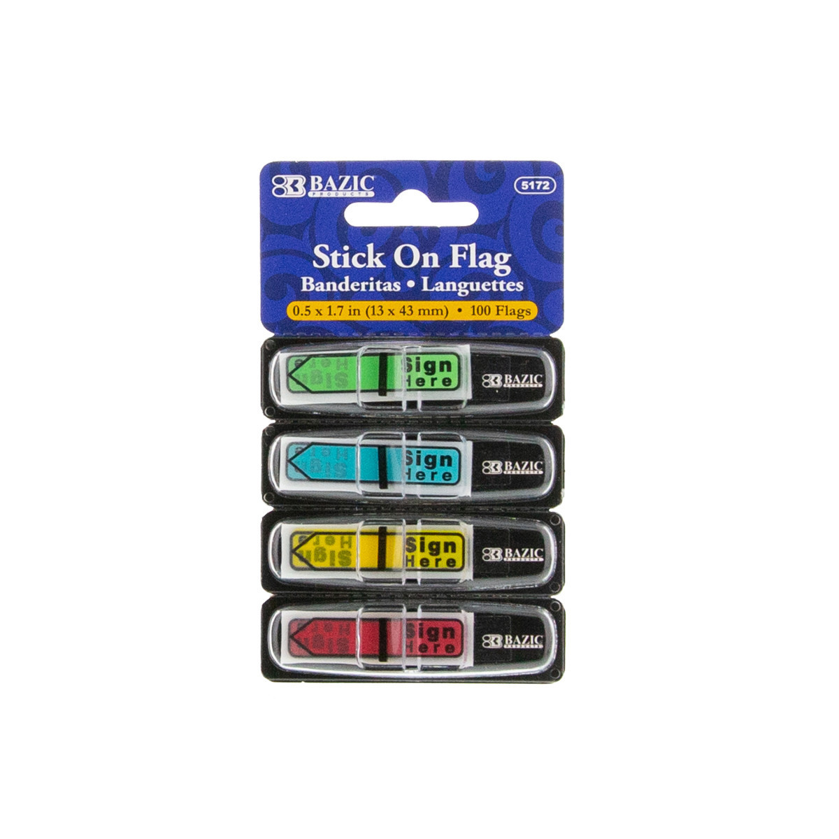 Self-stick flags adheres securely and allows repositioning with ease. Durable material prevents wear and tear from repeated handling and use. Features durable perforated cardboard dispensers with plastic cover. Each dispenser includes 25 flags. Includes 4 dispensers for a total of 100 flags. Colors include: Neon Blue, Neon Green, Neon Yellow and Neon Red. Measures 0.5" x 1.7".